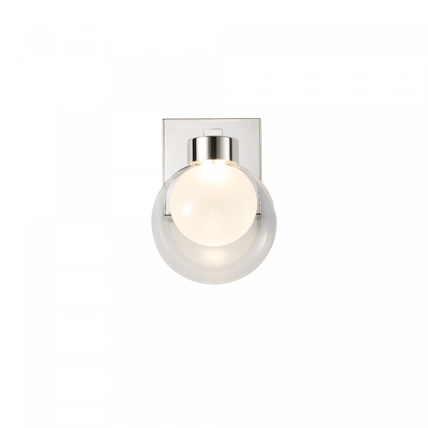 The colton collection wall sconce exudes contemporary elegance with its polished nickel frame, radiating refined charm. Its double glass design—clear outer and frosted inner—creates a mesmerizing glow, enhanced by energy-efficient led illumination. Tailored to your ambiance, a convenient 3cct switch allows you to choose between warm (3k), neutral (4k), or cool (5k) color temperatures. Perfect for modern interiors, this fixture blends practicality and artistry effortlessly. Great for a bathroom vanity, hallway or dining room.