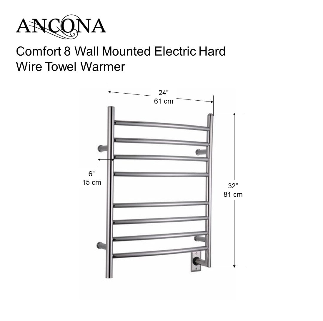 Crafted in high-quality stainless steel with brushed finish, this warmer is designed to blend perfectly with your existing décor and comes complete with all you need to hardwire it directly into the wall, and comes with a 24-hour 7-day programmable digital wall timer. This warmer is an elegant way to keep your towels and clothes dry, fresh and warm in any weather.