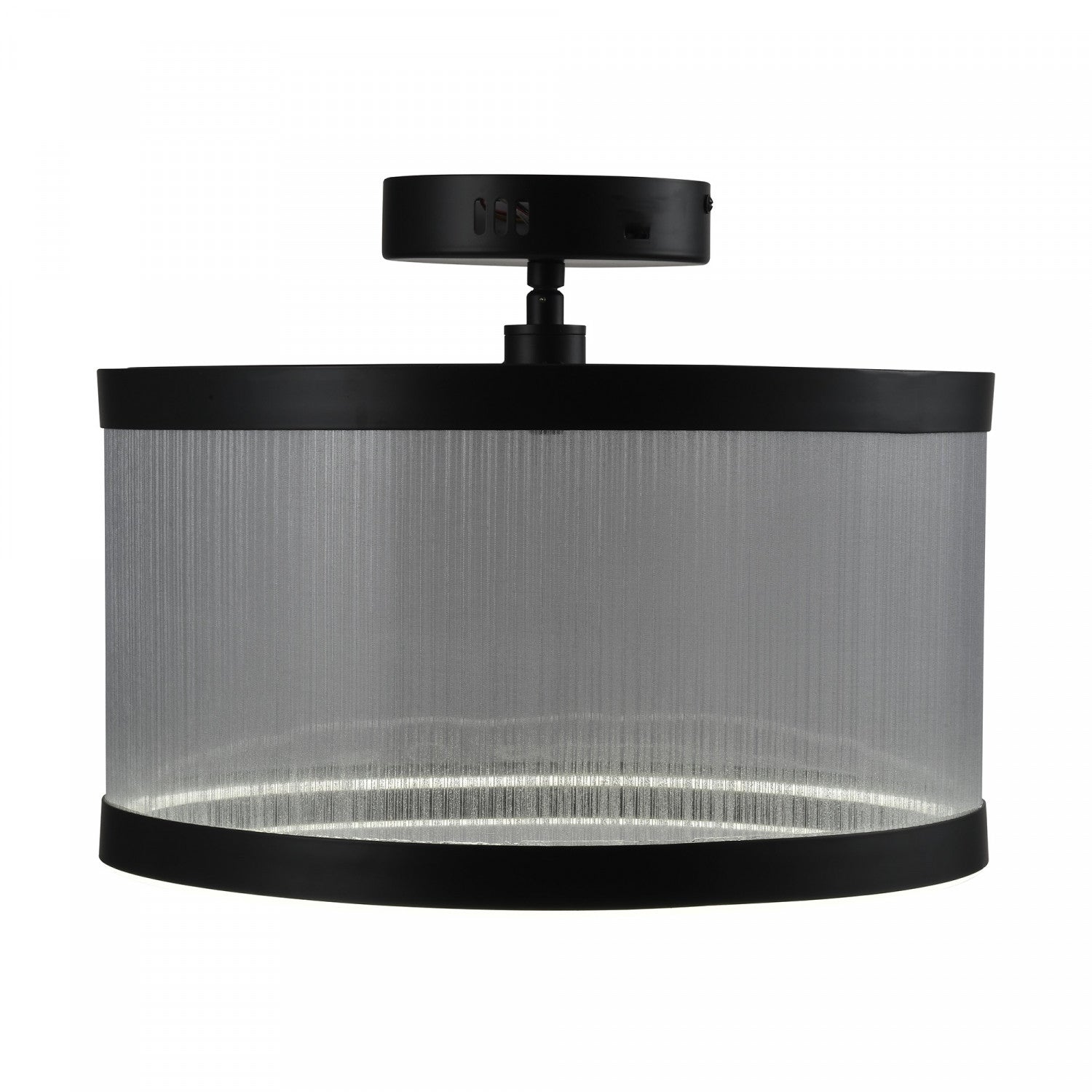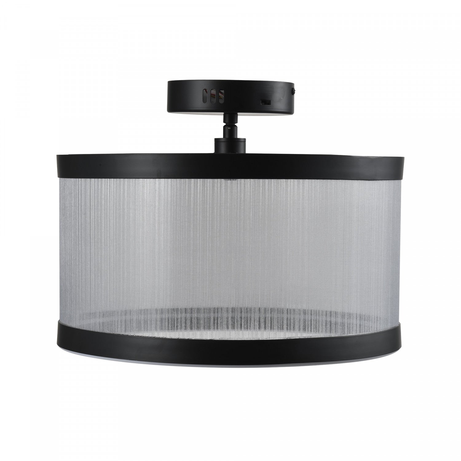 The cora collection semi flushmount enchants with its modern elegance, showcasing a sleek black metal frame paired with a silver organza hardback shade. This led chandelier exudes a soft yet striking glow, illuminating through its bottom ring to create a warm ambiance. Equipped with a versatile 5cct switch, it offers customizable lighting to suit any mood or setting. This design seamlessly blends functionality and style, making it a refined statement piece for any interior.