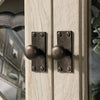 Accent Details | Framed, safety-tempered glass doors with X-brace muntins. |