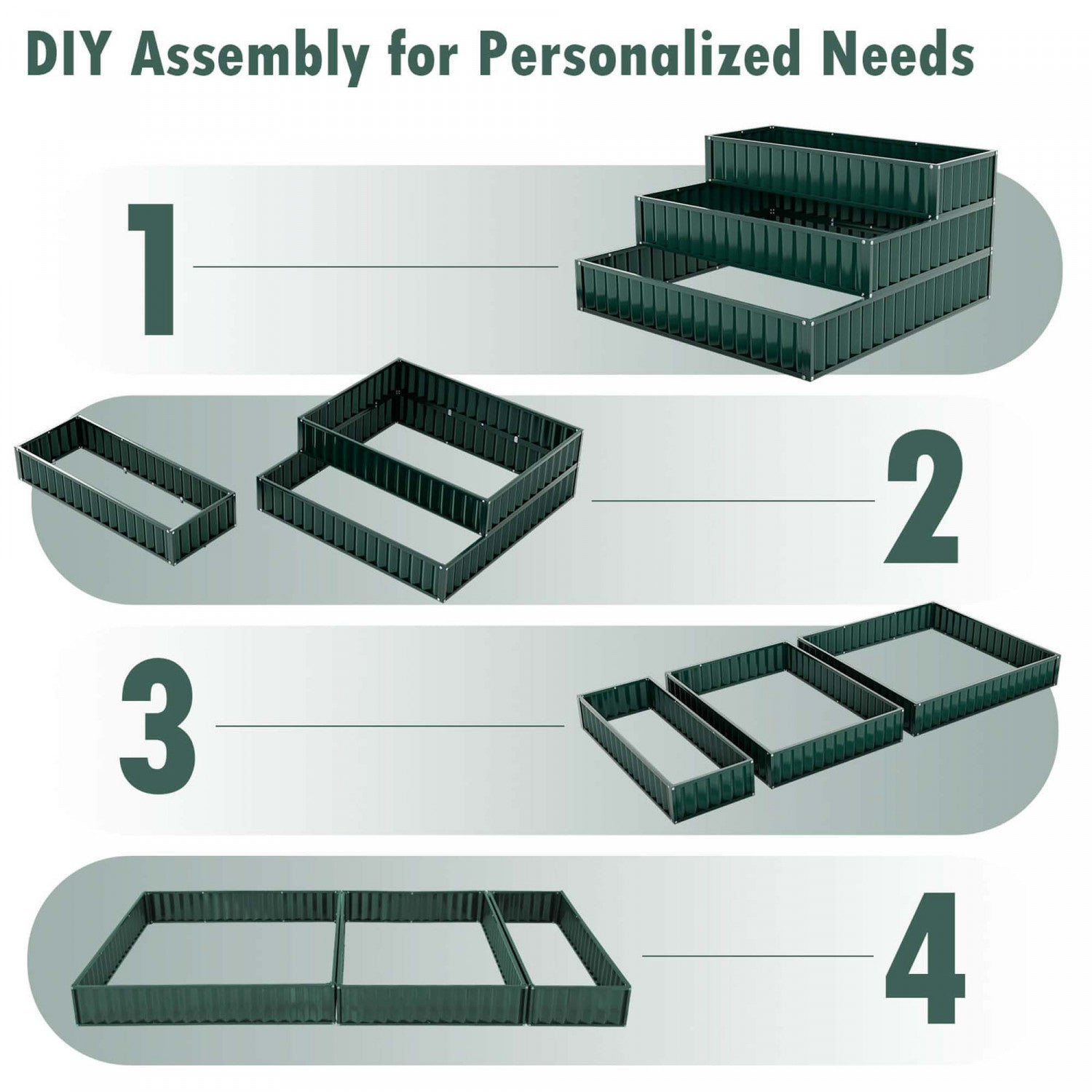 Costway 1 Pcs 3-tier Raised Garden Bed,47" X 47" X 24" Metal Outdoor Elevated Planter Box Green