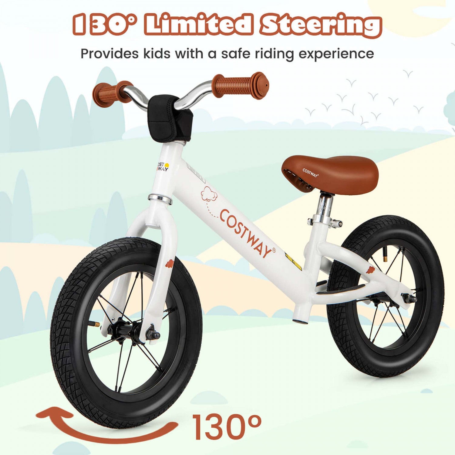 Costway 12 Inch Toddler Balance Bike No Pedal Training Bicycle With Inflatable Rubber Tires White