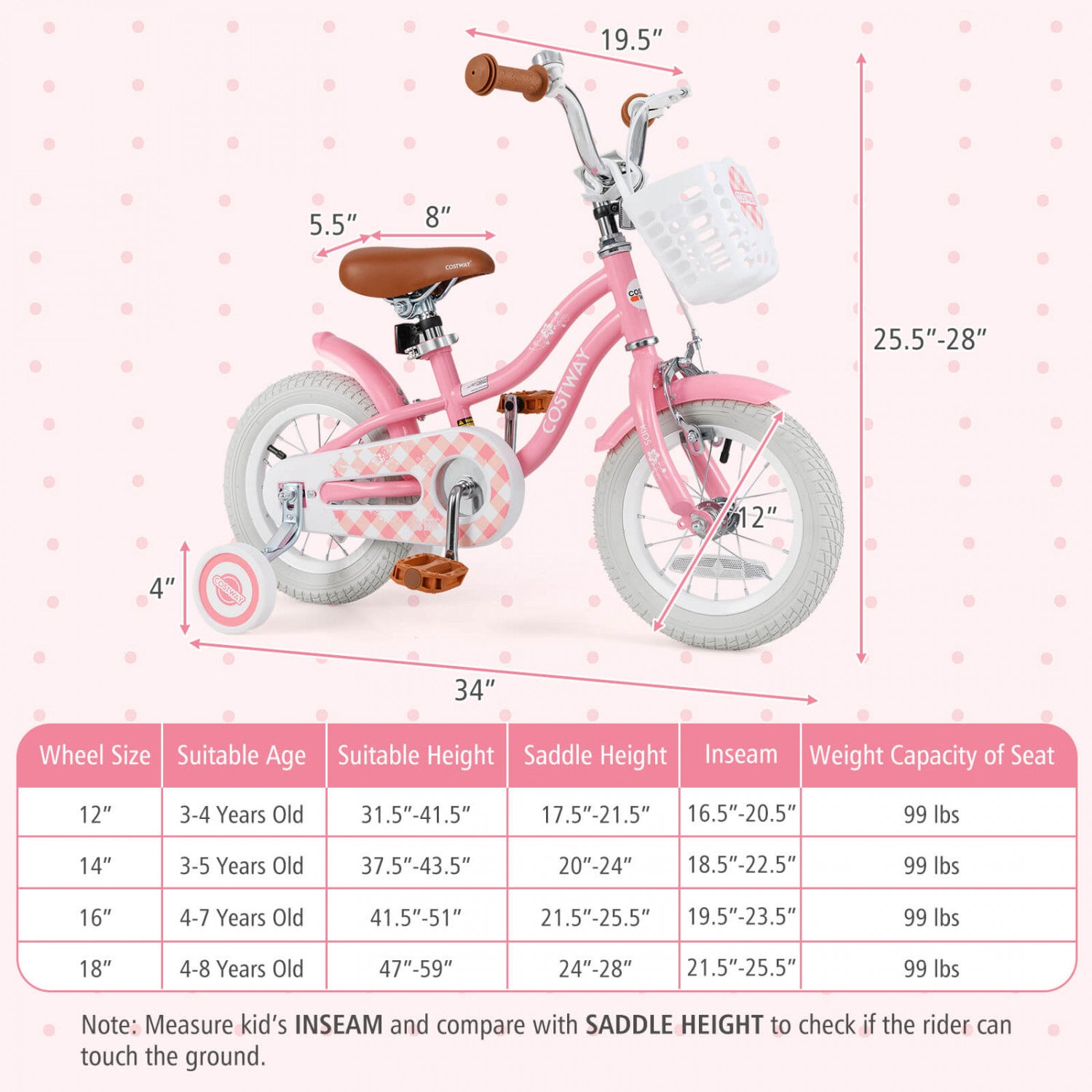 Costway 12" Kid's Bike For 3-4 Years Old Children Bicycle With Front Handbrake Red