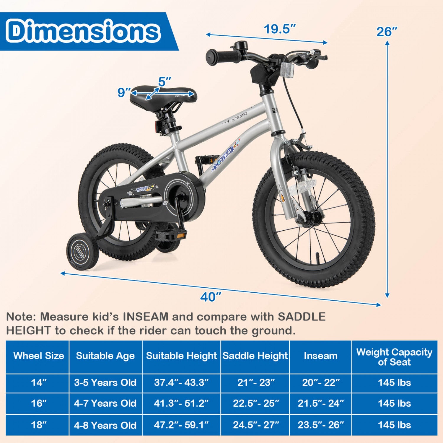 Costway 14-inch Kid's Bike For 3-5 Years Old With Adjustable Saddle & Anti-slip Handlebar Silver