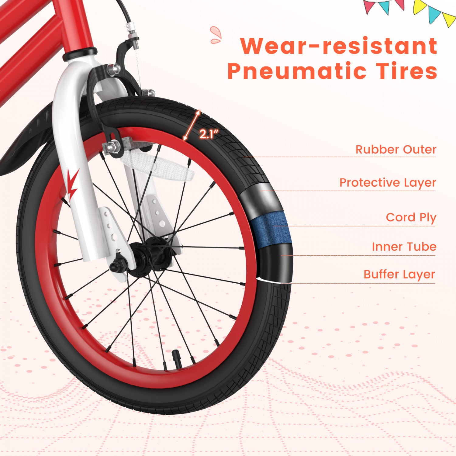 Costway 16" Kid's Bike With Removable Training Wheels & Basket For 4-7 Years Old Red