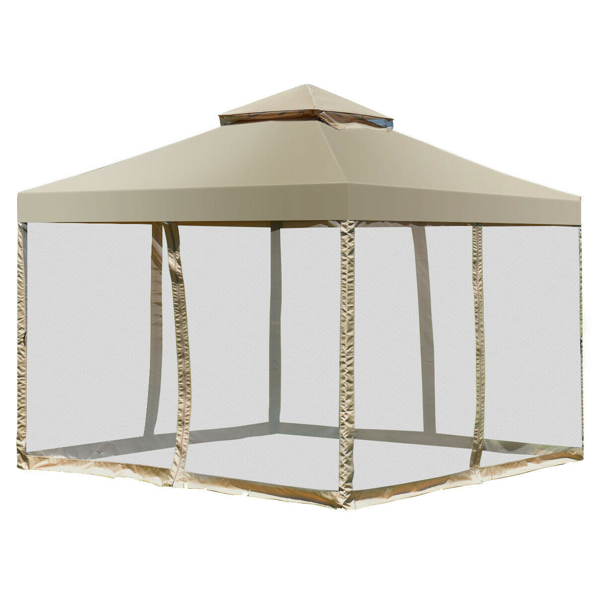 Costway 2-tier 10'x10' Gazebo Canopy Shelter Awning Tent Patio Garden Screw-free Structure Brown