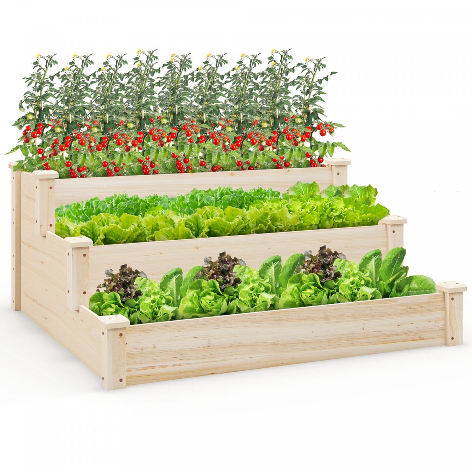 Costway 3-tier Wooden Raised Garden Bed With Open-ended Base Growing Planter For Backyard