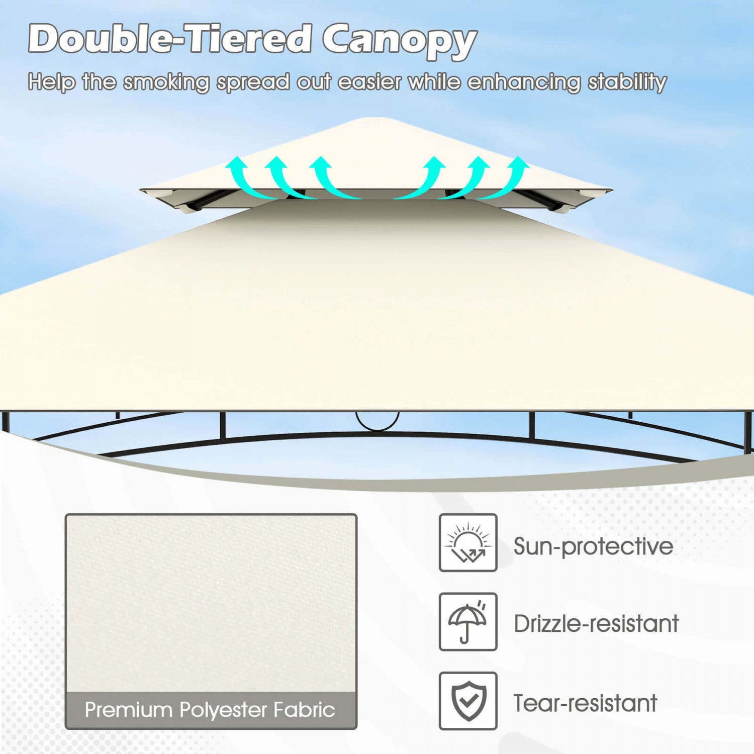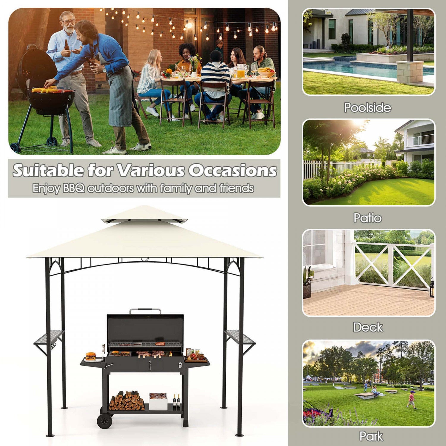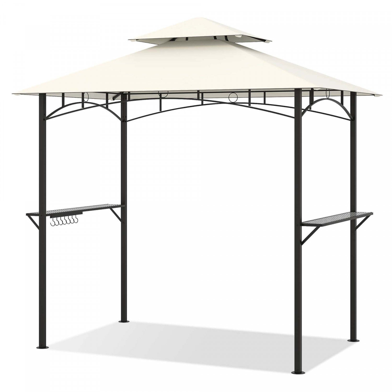 Costway 8' X 5' Grill Gazebo With 2 Shelves 7 Hooks Metal Frame Soft Top Beige