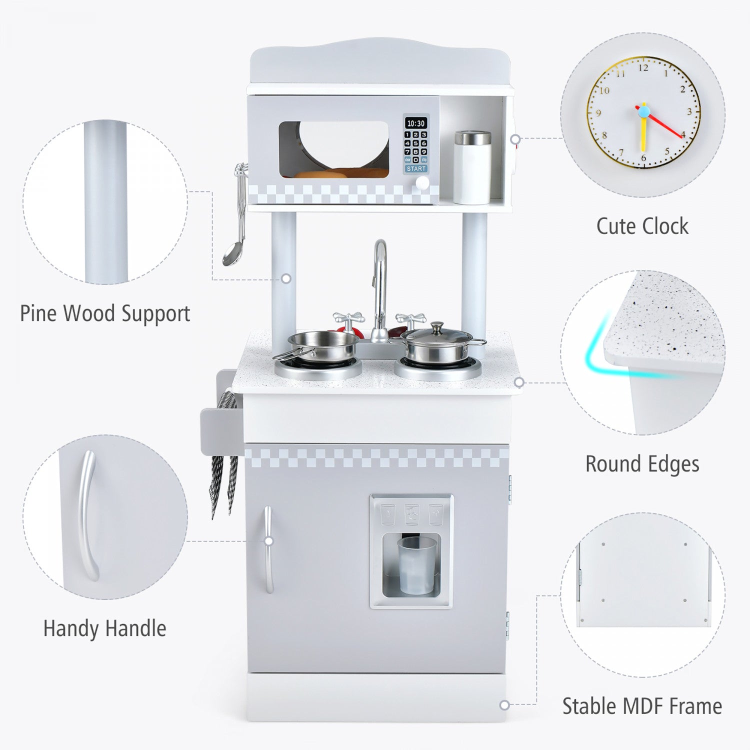 Costway Kids Kitchen Playset Pretend Wooden Play Kitchen With Icedispenser&stovefor Toddler