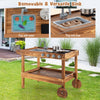 Costway Kids Wooden Mud Play Kitchen Cart With Sink, 4 Stoves & Storage Shelf Natural
