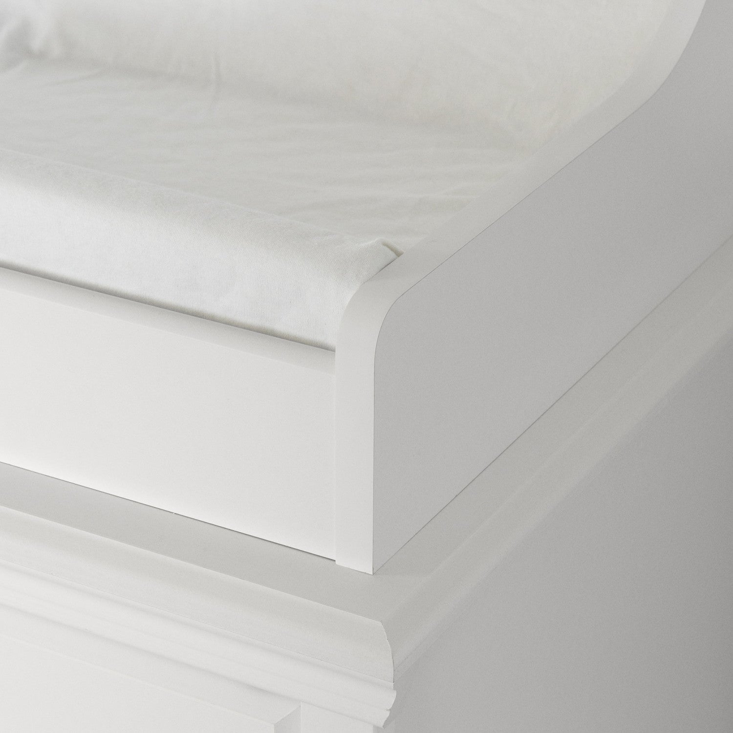 Elegant styling for your little one. A perfect solution for small spaces, this compact changing table from the cotton candy collection provides everything you need for a changing table and dresser. Its 3 large drawers give you all the storage space you need for clothing, bedding, and toys. The beveled top edge and drawer frames make this piece of furniture unique. Once baby outgrows the changing table, easily transform it into a dresser by removing the changing pad. The changing table is perfect for babies up to 30 lb. Smart storage solution this changing table features 3 spacious drawers with smooth metal slides for quiet and easy access. You can use the ample storage space for clothing, bedding and baby accessories. When your baby outgrows the changing table, easily transform it into an elegant dresser for your child’s bedroom by removing the changing pad.