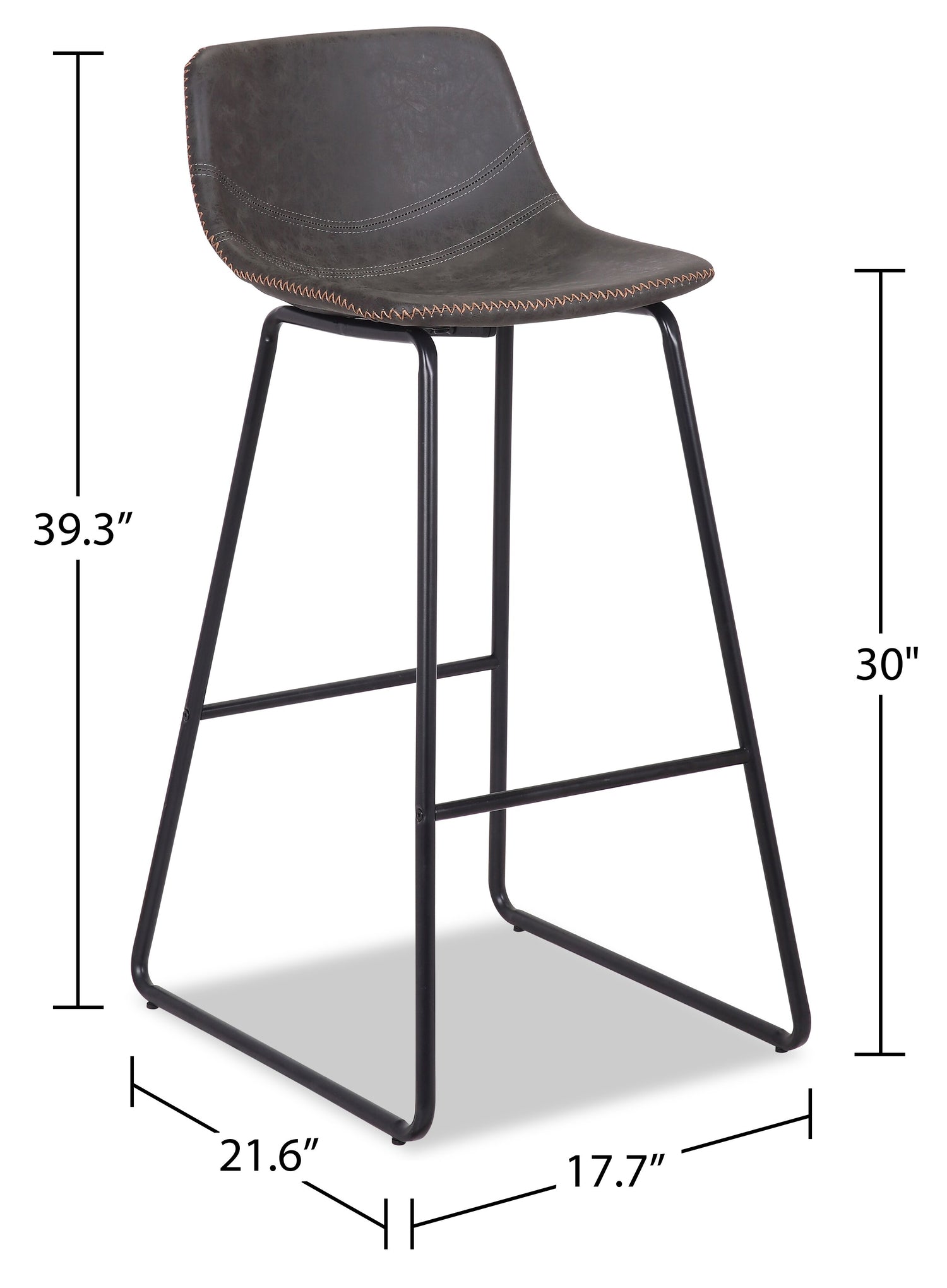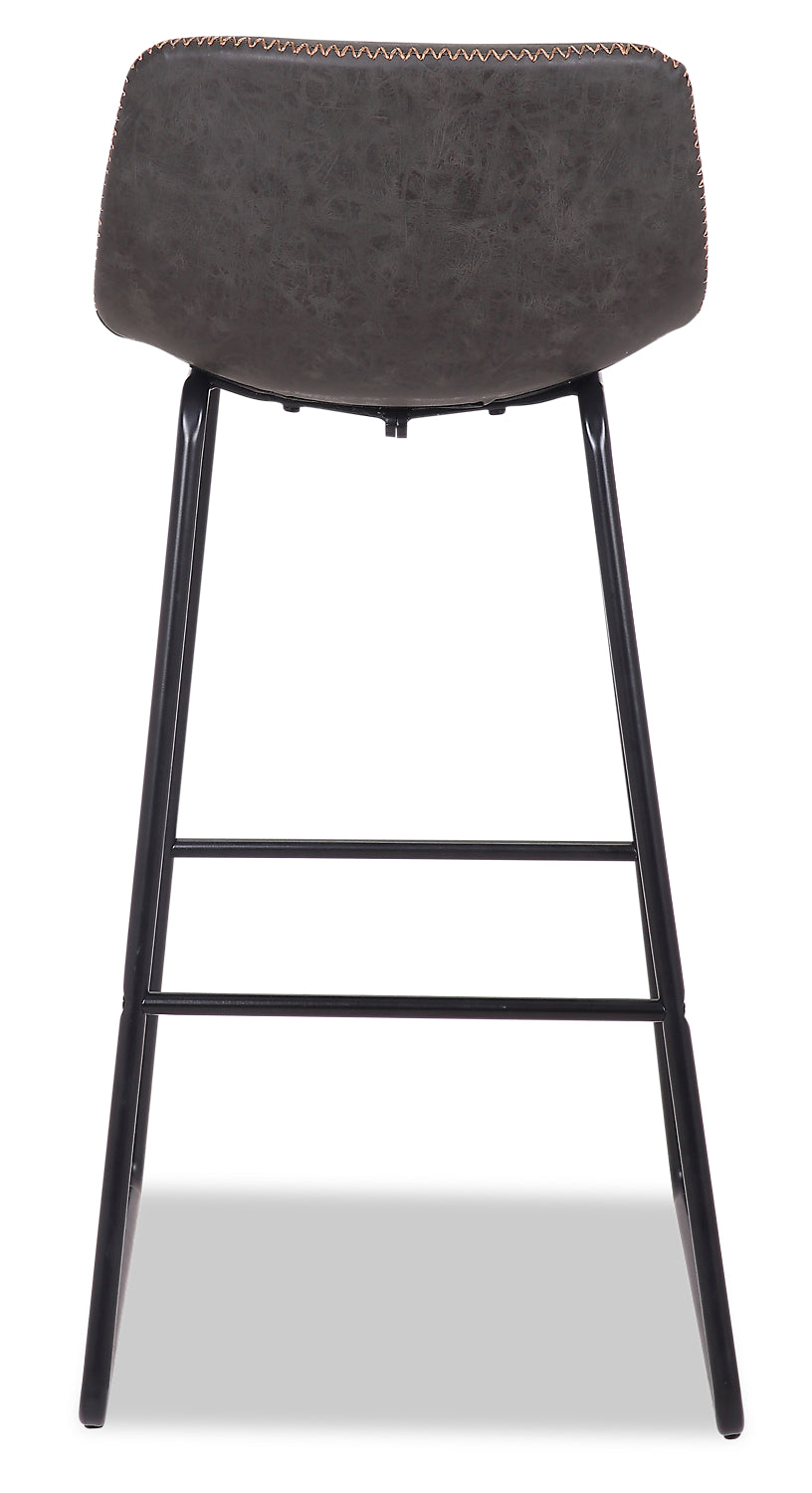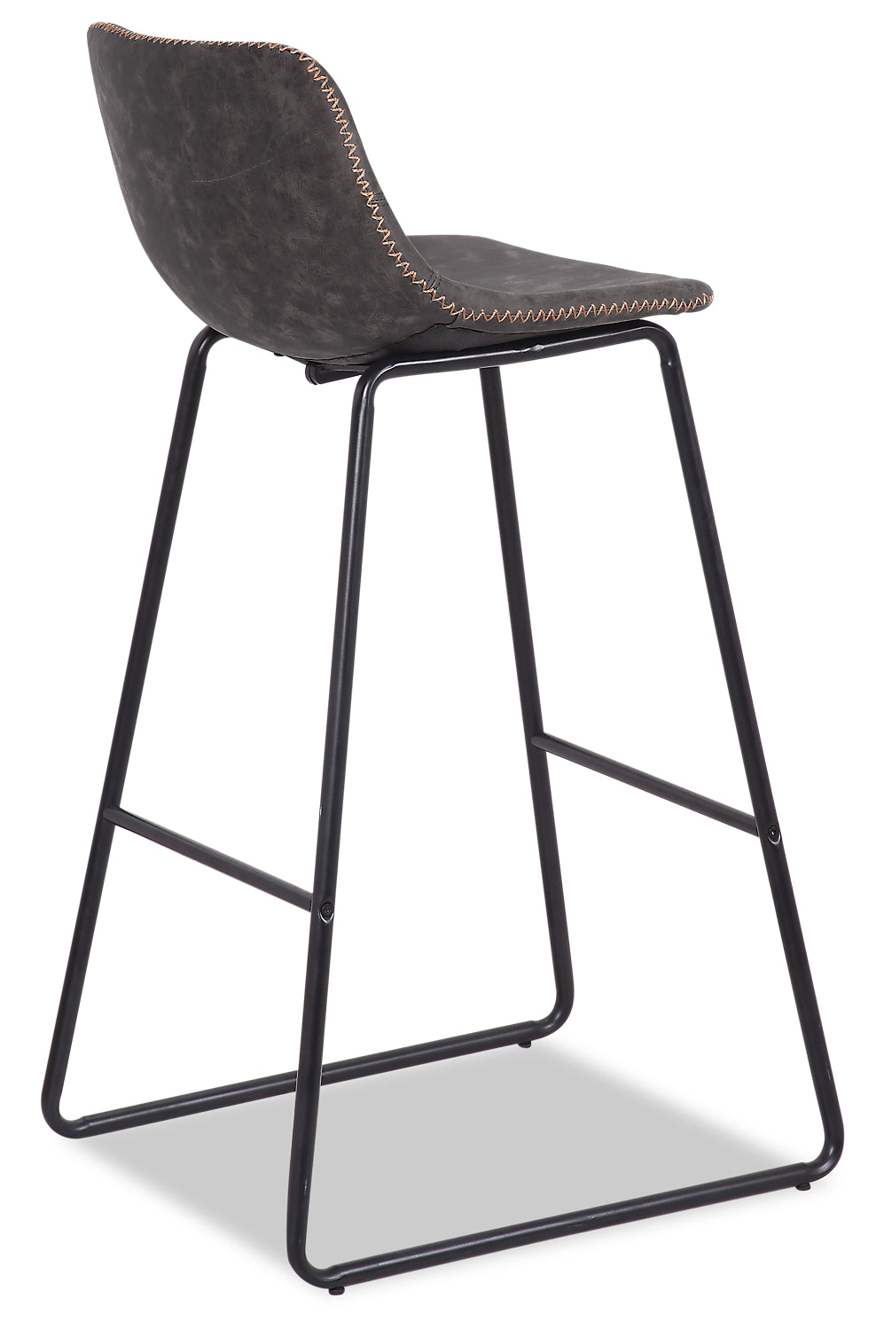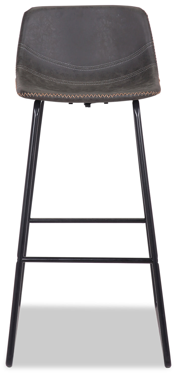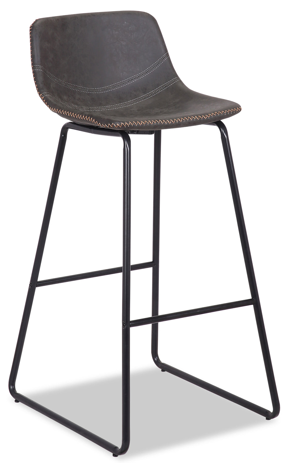 Look up. Look way up. Gain a higher perspective on good cuisine when you add the Coty grey bar stool to your dining space. A faux leather scoop seat decorated with zigzag embroidery makes the perfect spot to curl up in. Long, thin powder-coated iron legs help you rise to new heights to look chic while saving floor space. Take the Coty home today and enjoy quality meal time comfort for many dinners to come.