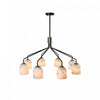 The crema collection 8 light round chandelier by steven sabados of s&c radiates understated sophistication with its alabaster-style swirl glass, casting a warm, inviting glow. Its sleek black frame is beautifully complemented by brushed brass accents, creating a perfect harmony of modern sophistication and classic charm. Rods included for easy height adjustment to suit different height requirements.