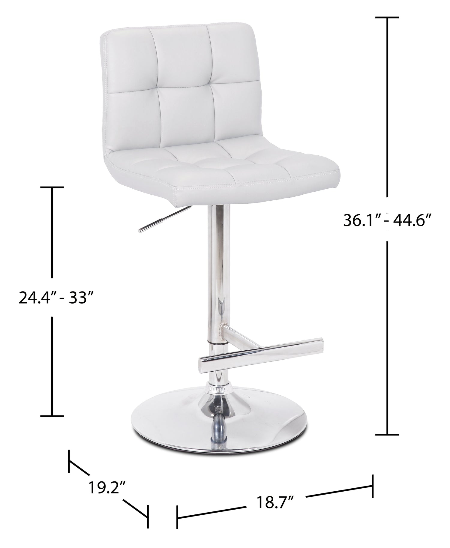 Cruz Barstool with Swivel & Adjustable Seat, Vegan Leather Fabric, 24-33"H, Metal - White
