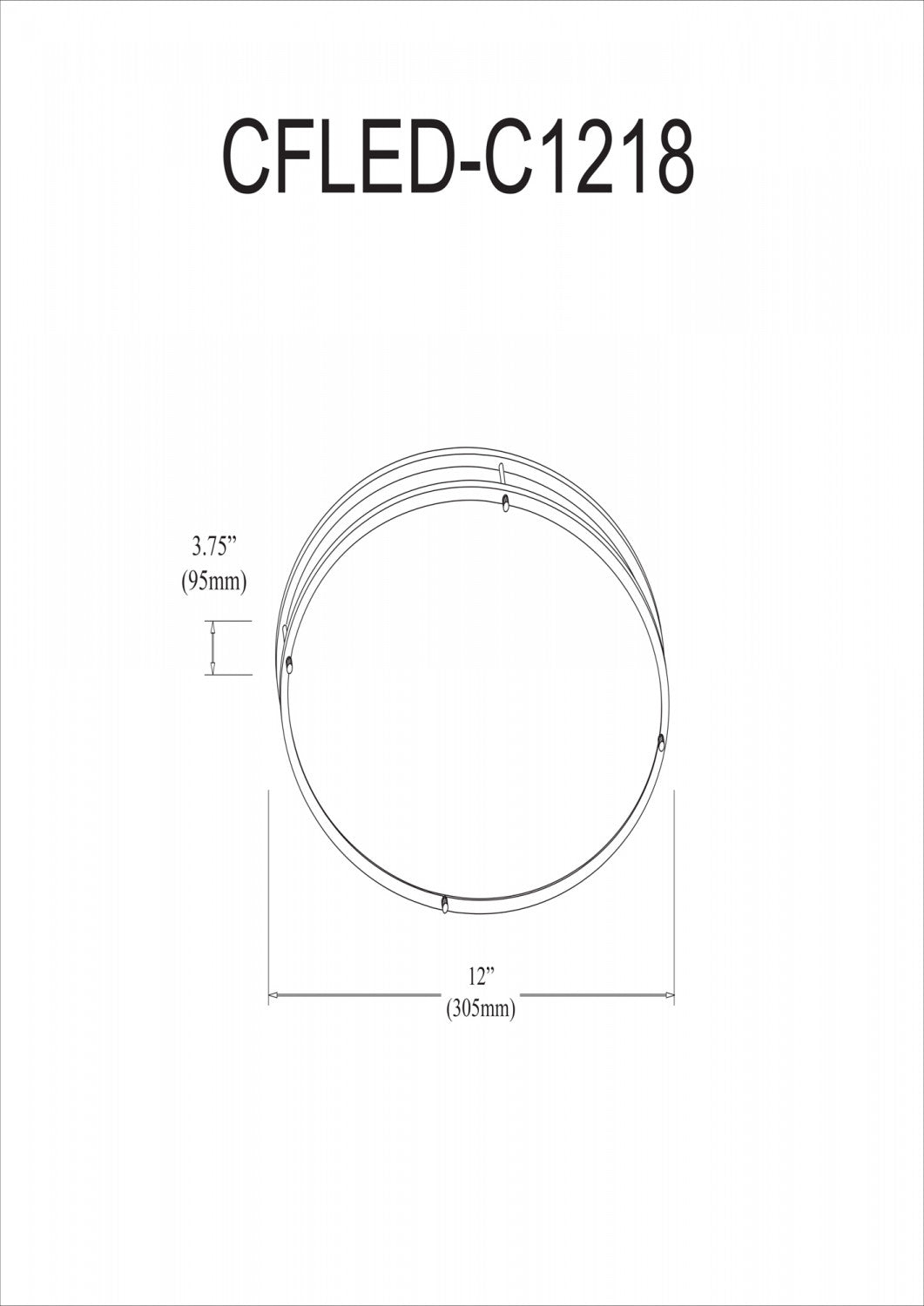 Width: 12" (30.5 cm) Height: 3.75" (9.5 cm) Depth: 12" (30.5 cm)