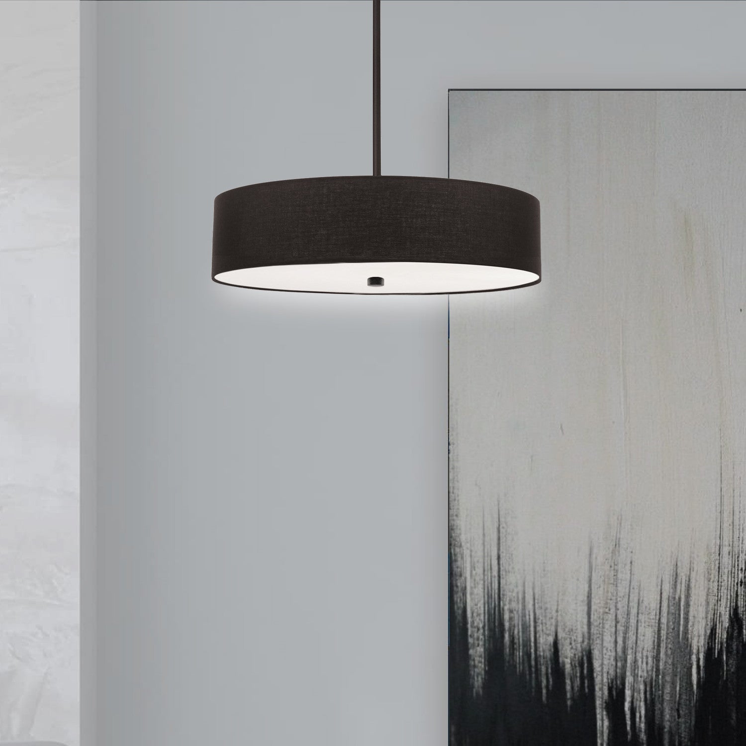 Dainolite Everly 4 Light Pendant Matte Black Finish Black Shade Lamp