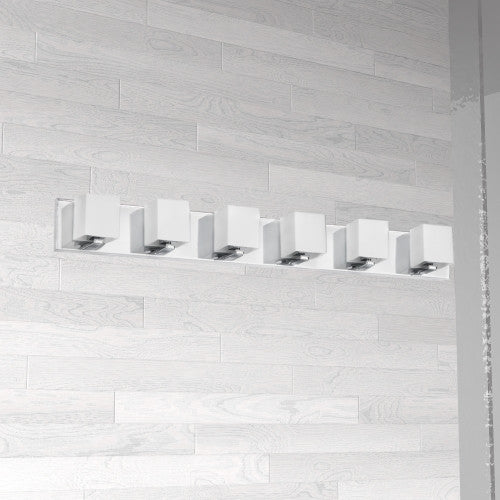 Dainolite Verona 6 Light Vanity Light Polished Chrome Finish White Glass Shade Lamp