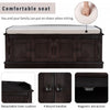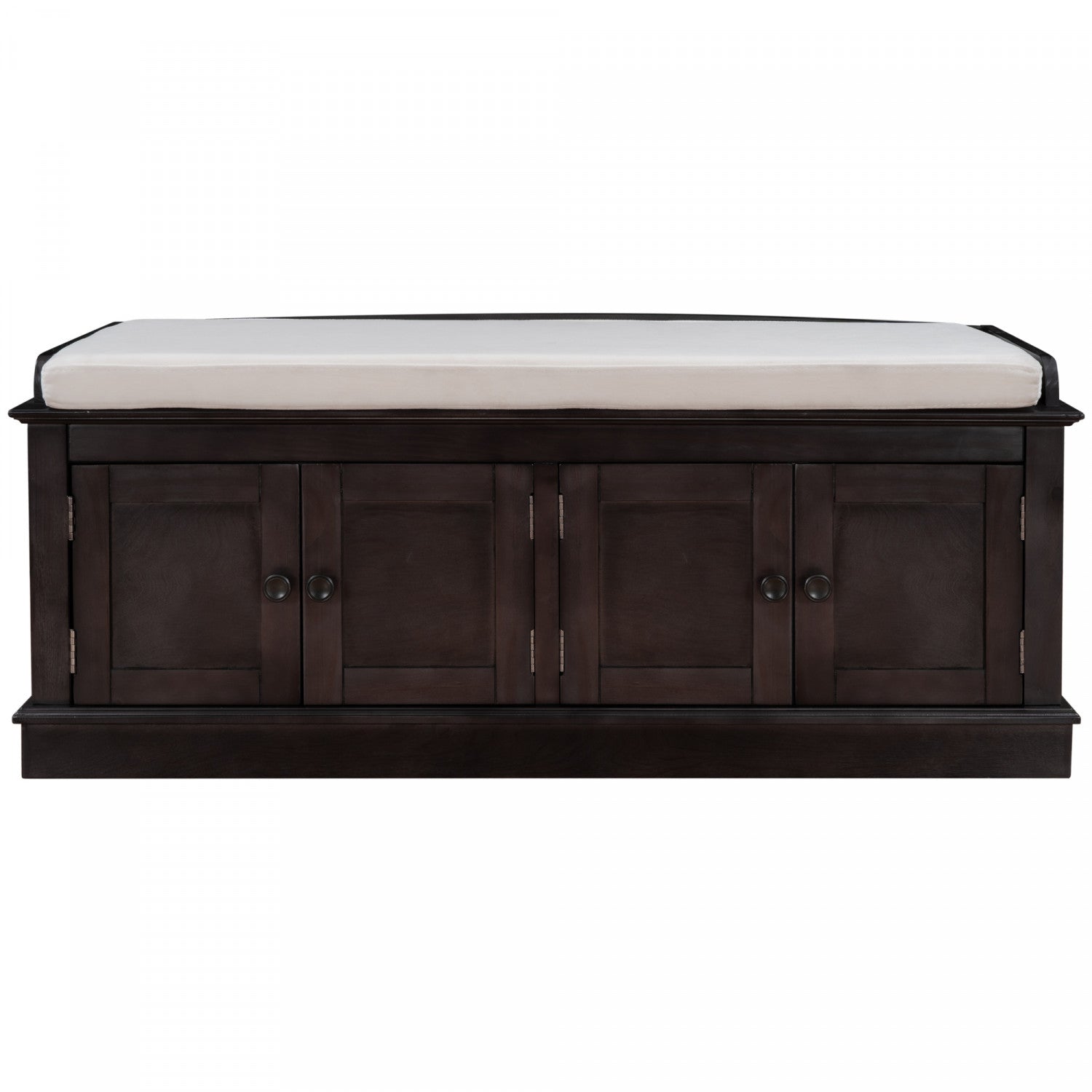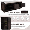 Organize your entryway with the storage bench. Featuring four doors with adjustable interior shelves, this bench combines style and practicality. A removable 2. 2-inch cushion offers added comfort, while the solid wood and mdf construction ensures lasting durability. Round handles and magnetic door closures provide easy access to everyday essentials. Ideal for hallways, mudrooms, or living rooms, this bench helps keep your home tidy and stylish. Easy to assemble with all tools included.