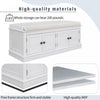 Organize your entryway with the storage bench. Featuring four doors with adjustable interior shelves, this bench combines style and practicality. A removable 2. 2-inch cushion offers added comfort, while the solid wood and mdf construction ensures lasting durability. Round handles and magnetic door closures provide easy access to everyday essentials. Ideal for hallways, mudrooms, or living rooms, this bench helps keep your home tidy and stylish. Easy to assemble with all tools included.