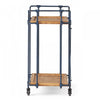 Add industrial flair to your entertaining space with the bar cart. Crafted with firwood trays and an antique black iron frame, this 2-tier mobile cart features smooth-rolling wheels and curved handles for easy mobility and warm aesthetic. Whether serving drinks, storing barware, or used as a display shelf, its compact yet functional design fits effortlessly in patios, kitchens, or living rooms. A versatile and stylish choice for modern hosts.