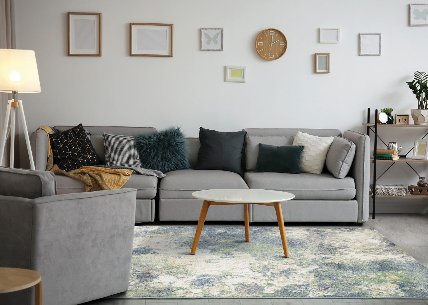 Composed and contemporary, rugs in the Dayton collection show fresh geometric and abstract patterns. The sleek, low pile is soft to the touch, stain resistant, and easy to maintain by vacuuming regularly.