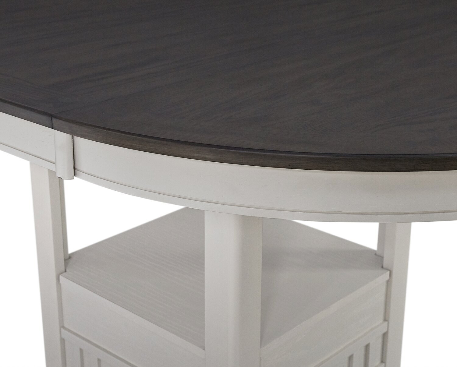 Gather your family, large or small, around this Dena dove grey counter-height dining table to break bread and make memories. Oak veneers are applied over a rubberwood base to create an appealing look in your chic eating space. Around the edge of the surface are bowtie-shaped connectors to hold the pieces together with a homemade feel. A compact design allows this piece to fit into a limited area – yet if everyone comes over for a special meal, you can use the removable table leaf for an extra 18 inches. Put this Dena table at the heart of your family's magical moments.