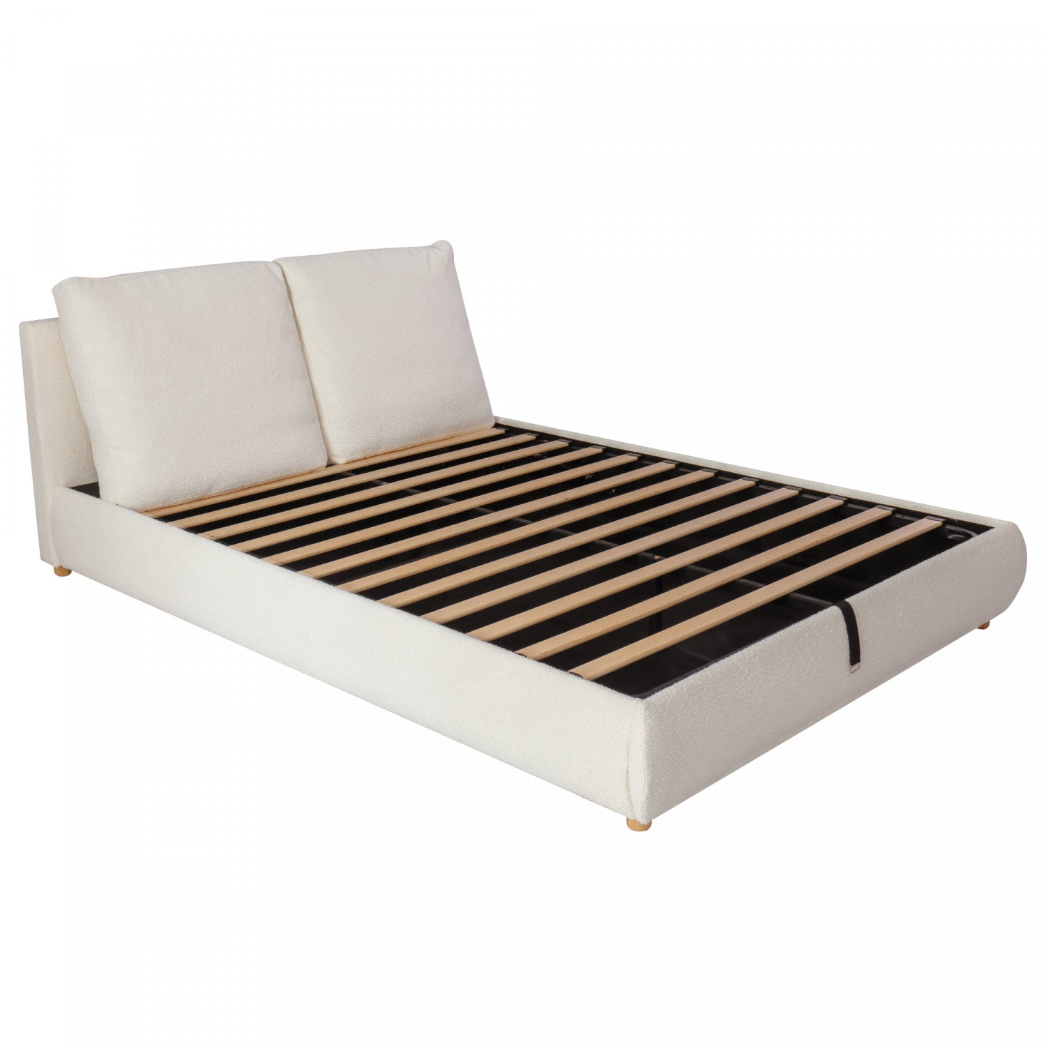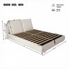 The Ottoman hydraulic lift storage platform bed features a plush boucle fabric upholstery and a unique, ergonomic headboard with removable, washable headrests for tailored comfort. The innovative hydraulic lift mechanism offers spacious storage, ideal for compact spaces. Built with a sturdy wooden platform frame, this bed eliminates the need for a box spring, providing reliable support. Its high-quality materials and sleek design make it both practical and stylish, perfect for any modern bedroom.