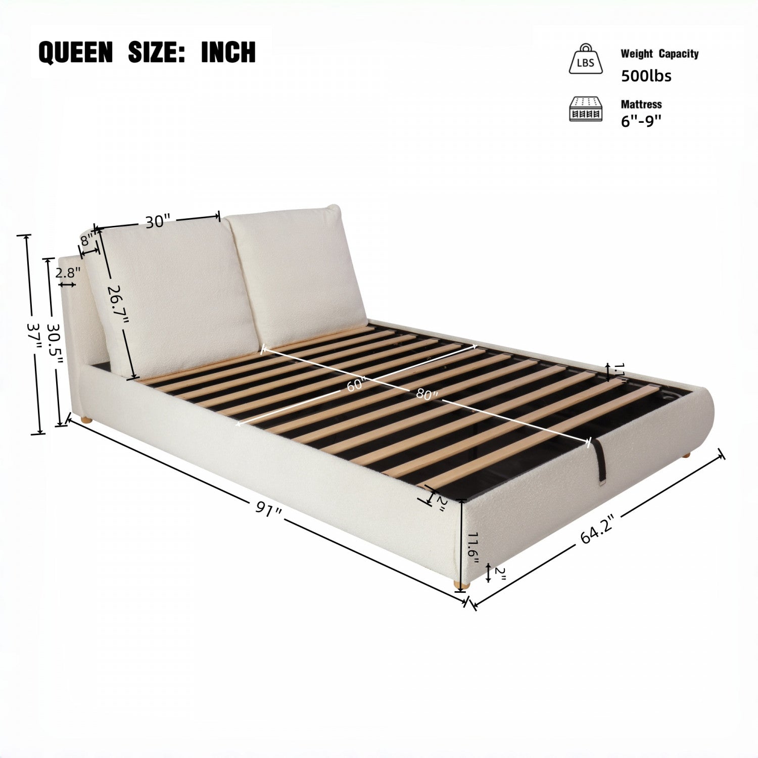 | Other Dimensions | Mattress Thickness: 6"-9" |