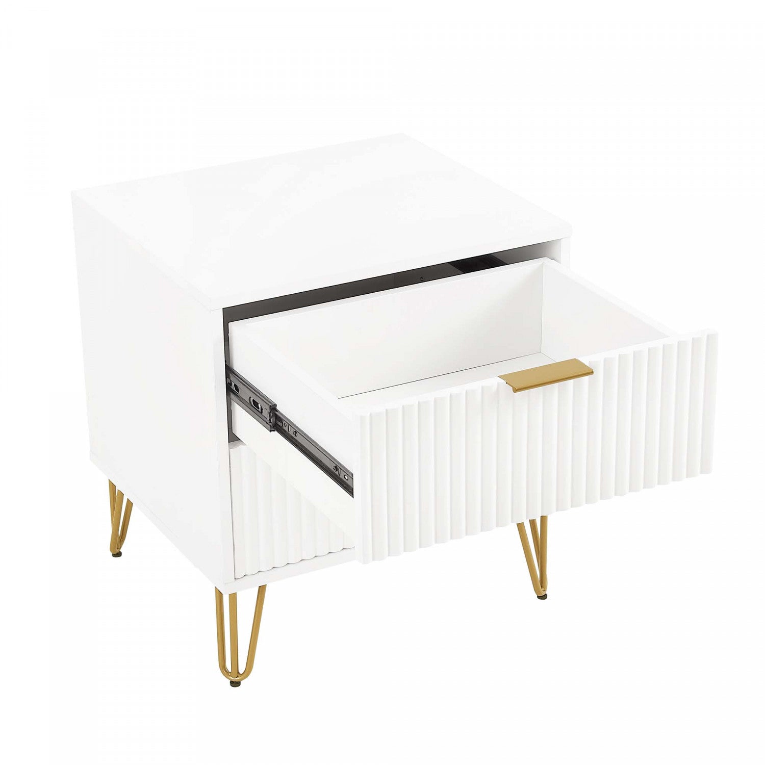 The Manhattan Comfort DUMBO Collection brings tasteful modern glam to your home! This collection features "Snap It" Assembly - no tools required for full assembly of each product! With its unique vertical ribbed drawer fronts, full extension and soft close drawers, and stylish splayed metal legs, the collection is not only a true beauty but also made with quality! Stunning variety of colors with sleek metal horizontal handles available. DUMBO is what you have been looking for all this time! Make your house a home with the DUMBO Collection.