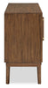 | Storage Options | Keep cutlery and serving utensils close and tucked away in the three spacious drawers while dinnerware and serving platters are stored in the cabinet. |