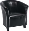 Style and sophistication are as much a part of this Ethan chair as its sleek black covering, but what distinguishes it from other accents is its friendliness. The bucket seat and small size give the user a snug, cozy feeling without the need for copious pillowing in the upholstery. The small size also encourages a more social atmosphere amongst those seated, making this an ideal choice for a living or family room.