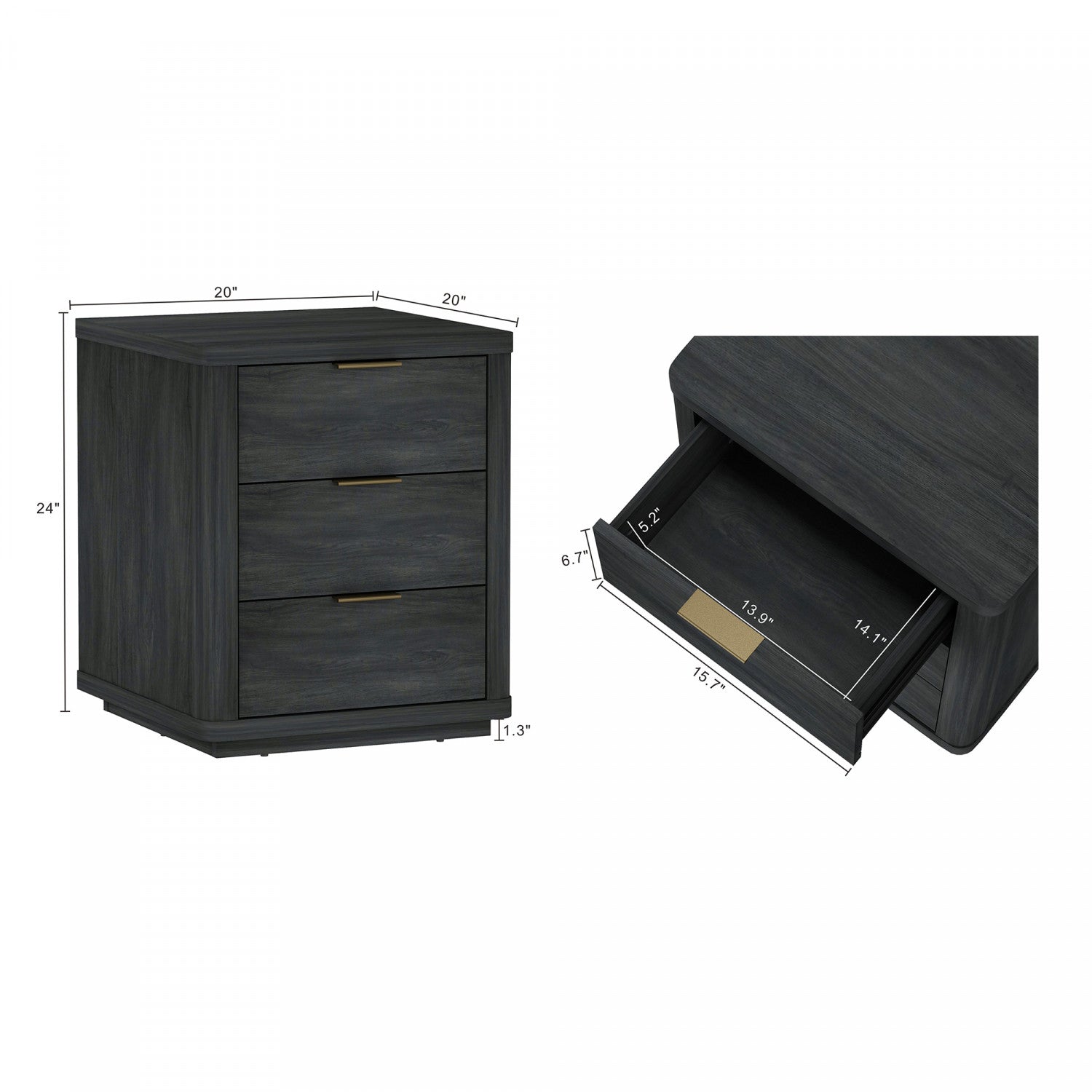 Evelyn Modern 20" Nightstand in Charcoal Gray (3-Drawer)