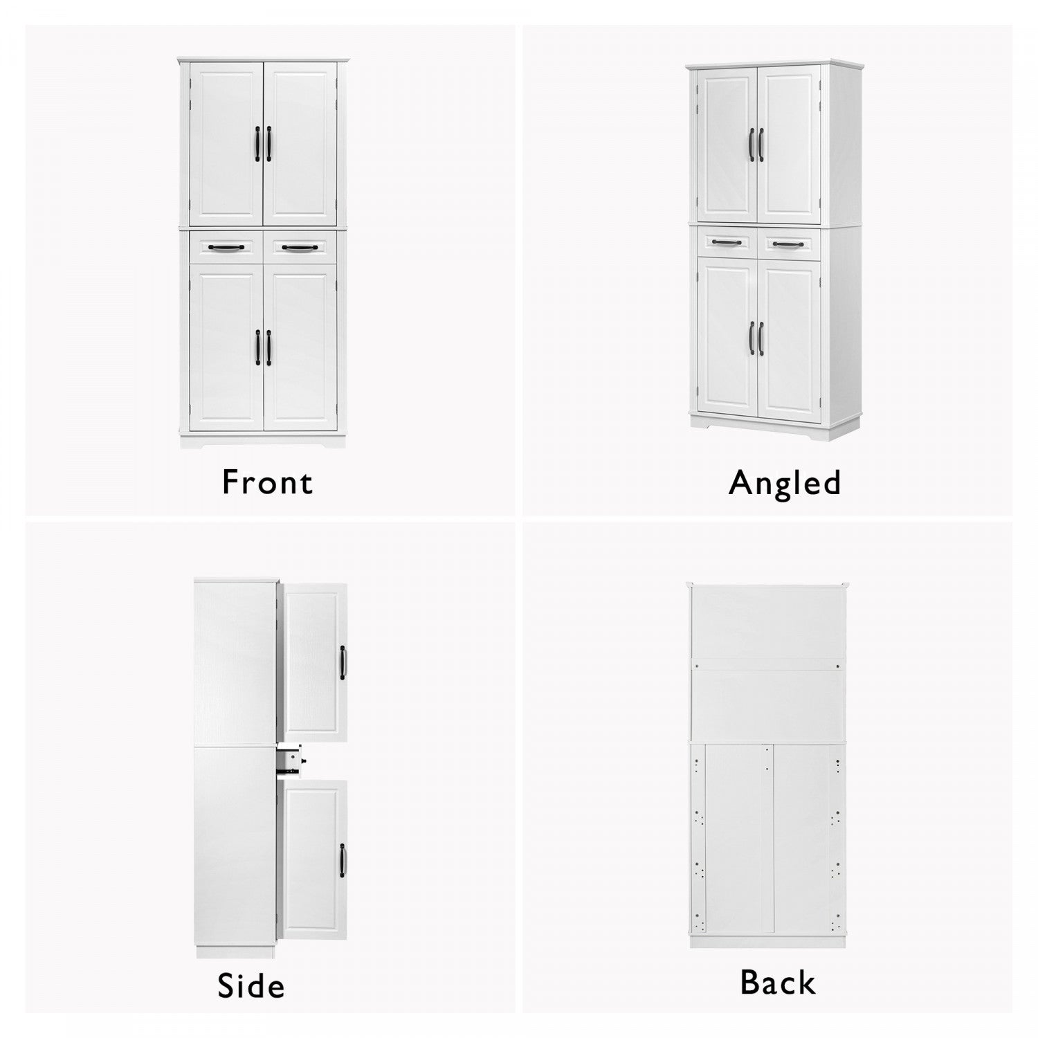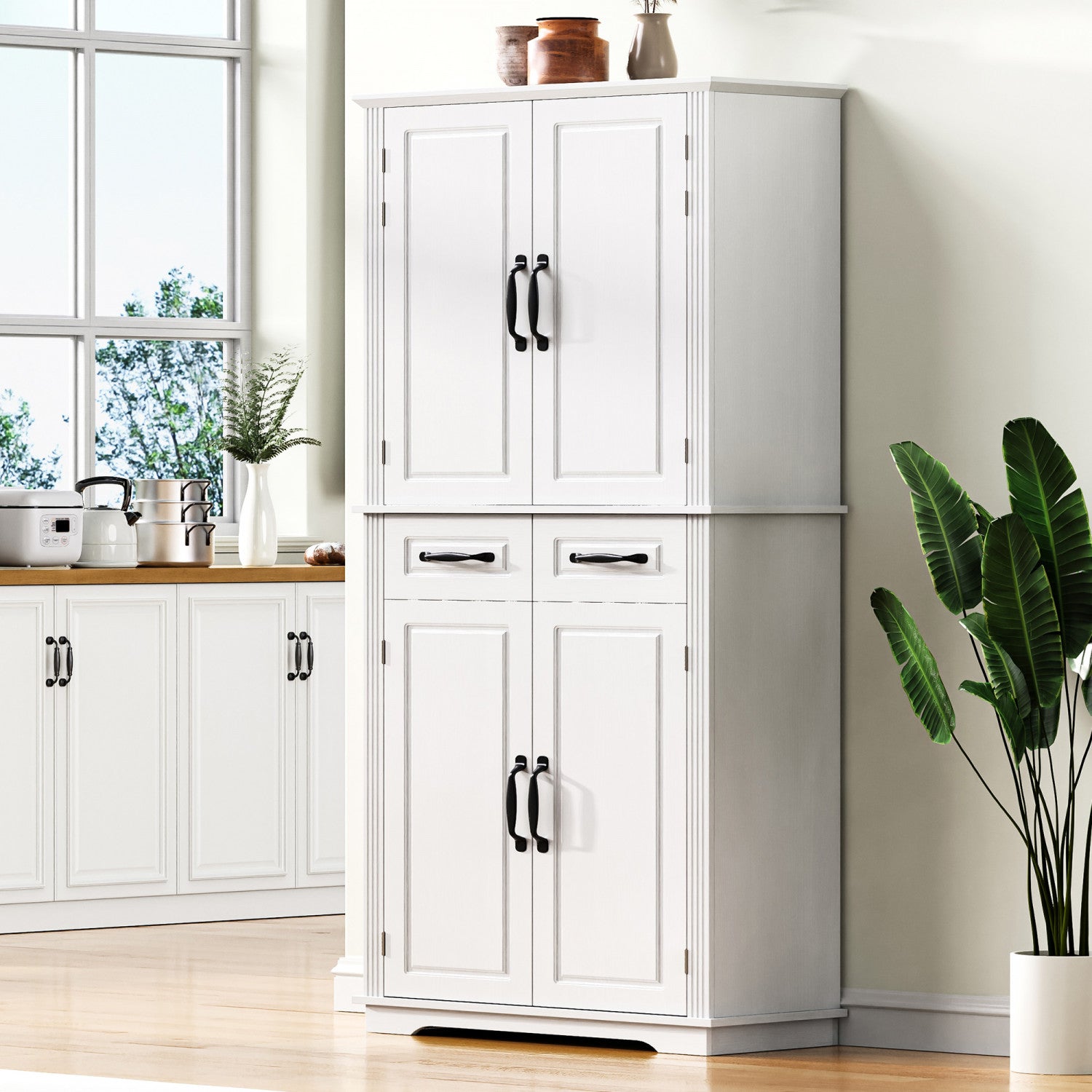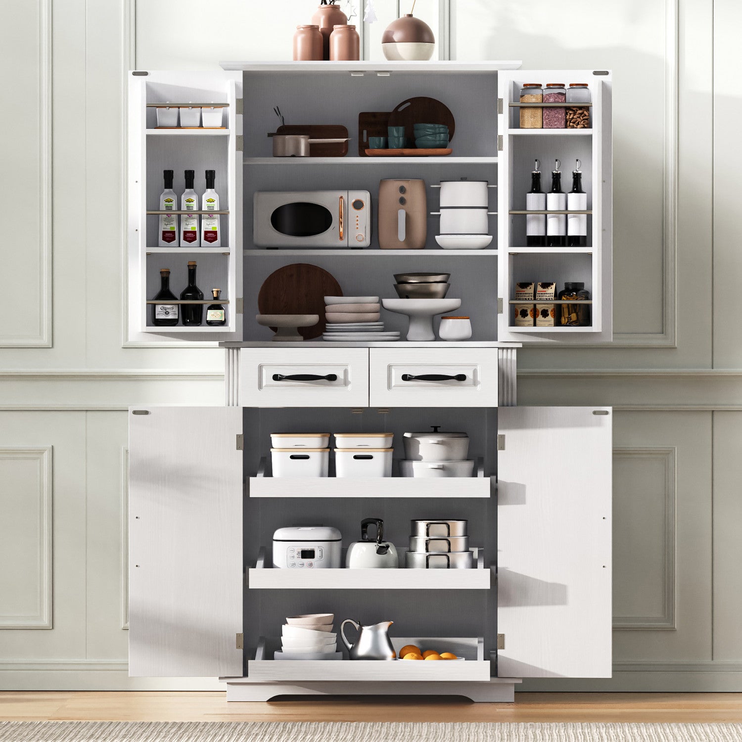 Fabian 72" Adjustable Shelves Pantry Cabinet With Pull-out Organizers - White