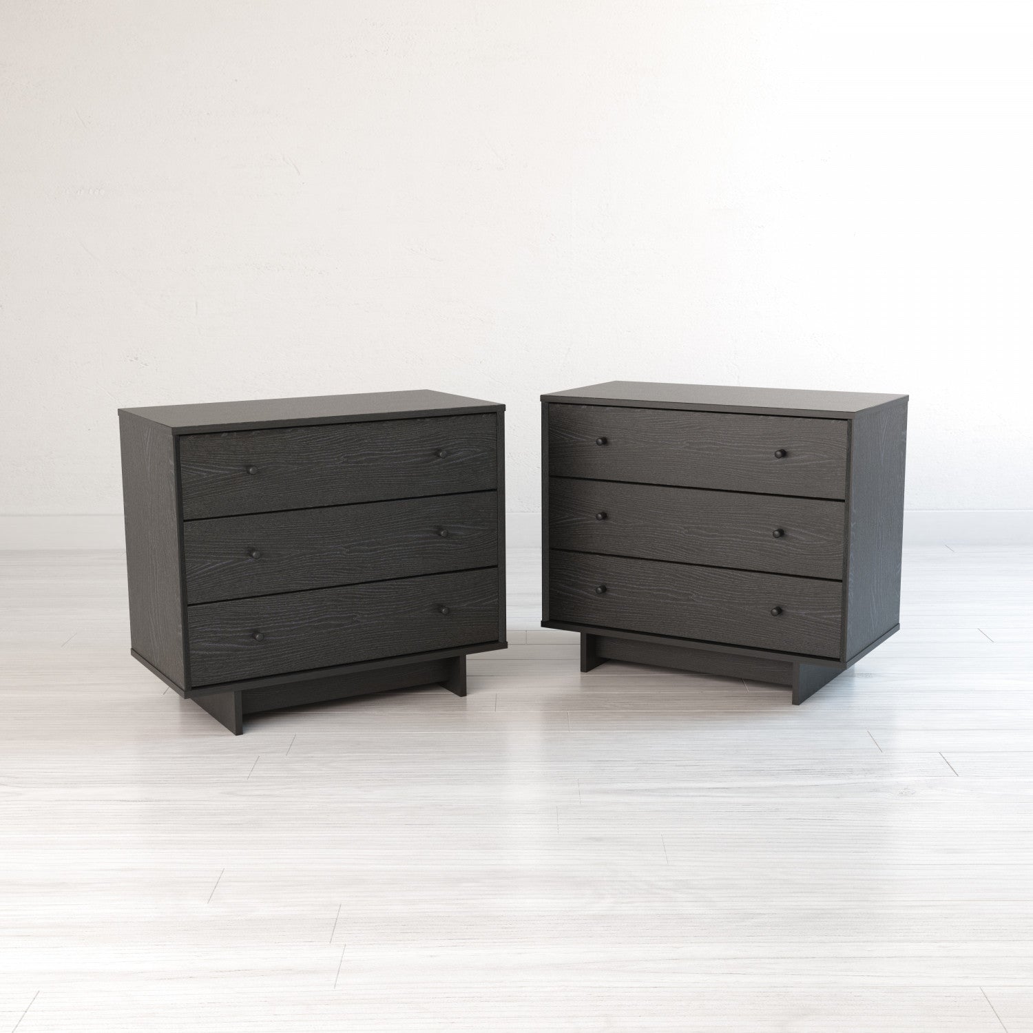 The finnley nightstands offer a perfect blend of style, functionality, and durability, making them a premium choice for any bedroom or living space. This set of 2 nightstands measures 16" d x 31" w x 26. 75" h each, providing an extra-wide surface and generous storage capacity. Designed for those who need more than a standard bedside table, each unit features three deep drawers, ensuring ample space to keep essentials like books, electronics, and personal belongings neatly organized. The smooth, solid pine drawer slides allow for effortless and noise-free operation, enhancing convenience and longevity. Finished in a rich black oak laminate, the black nightstand showcases a sophisticated wood grain texture that complements various interior styles, from contemporary to rustic. As a modern nightstand, it seamlessly integrates into any elegant decor, while its sturdy construction ensures lasting durability. More than just a nightstand with drawers, the finnley’s versatile design allows it to function as a bedside nightstand, providing practical storage next to your bed, or as a modern side table, perfect for arranging lamps, decor, or daily necessities. The sturdy build and wood nightstand finish bring warmth and depth, making it a timeless home addition.. Beyond the bedroom, this bedside table with drawers serves as a stylish night table with drawers in guest rooms or as side tables for bedroom storage solutions, offering both aesthetics and utility. For those who prefer a coordinated look, this black nightstand set of 2 ensures a cohesive design throughout the room. Proudly made in the usa and canada, the finnley nightstands are built with high-quality materials and come with a 5-year limited warranty, guaranteeing reliability and peace of mind. Whether used as a bedroom nightstand or a statement piece in your living area, these nightstands deliver the perfect combination of elegance and practicality, making them an essential upgrade to your home.