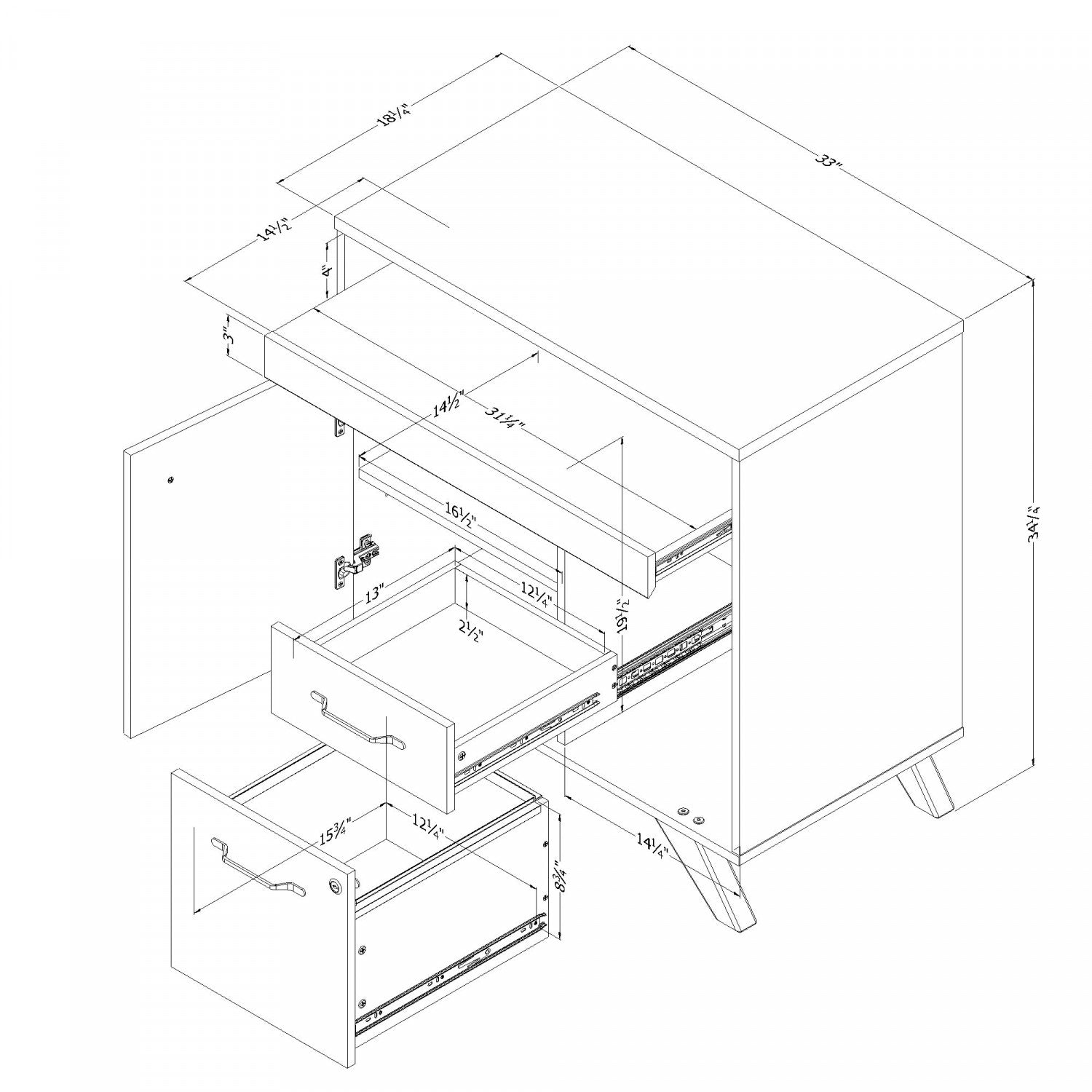 Width: 33" (83.8 cm) Depth: 18.25" (46.4 cm)