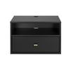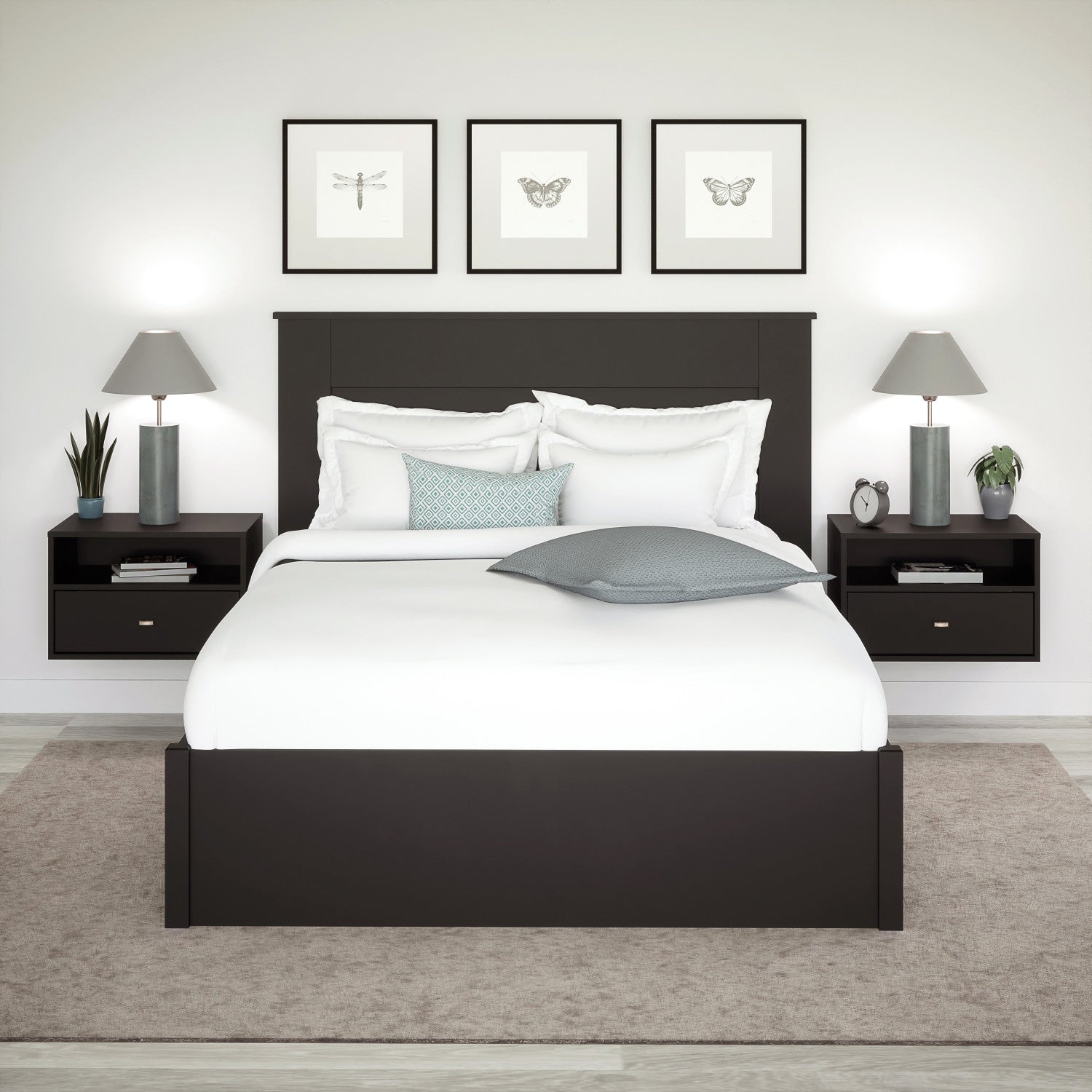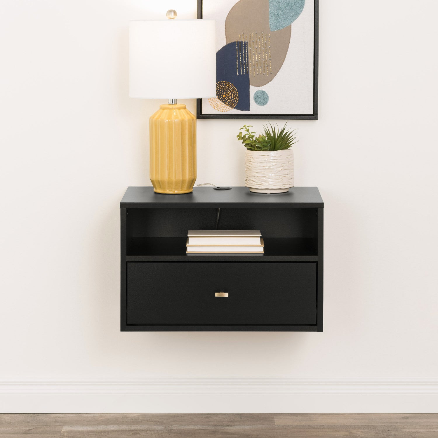 This elegant Floating Nightstand is the ideal companion for your modern bedroom. With both a drawer and an open compartment, it holds all your typical bedside essentials like books, magazines and glasses. For your electronic devices, both the top surface and the compartment have openings to manage cords. The hanging design gives you the flexibility to place it at any height and saves valuable floor space. Prepac's innovative mounting rail makes it easy to put up – you just have to find the wall studs.
