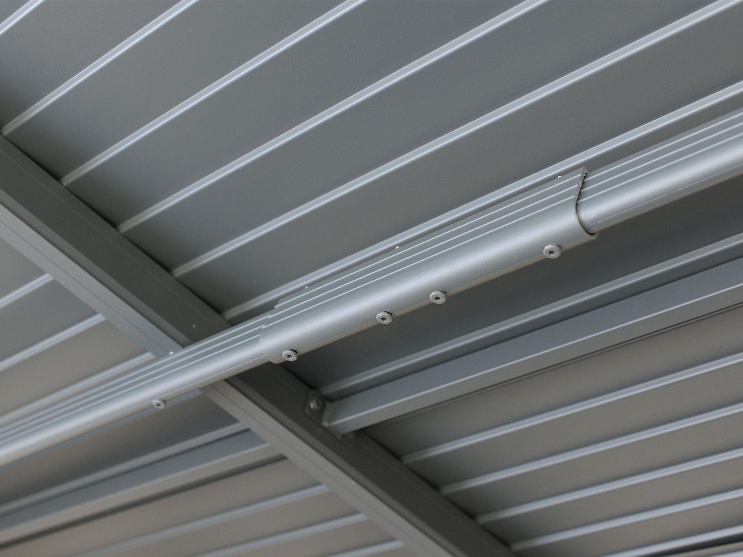 | • Heavy-duty aluminum frame with powder coated finish, protects against corrosion and rust • Reinforced roof is made of 0.45 mm galvanized steel with UV Protection • PVC windows can slide into five positions to allow maximum airflow • Two sliding doors that you can install in the position of your choice • Both ends of the door tracks are closed to prevent insects from entering |
