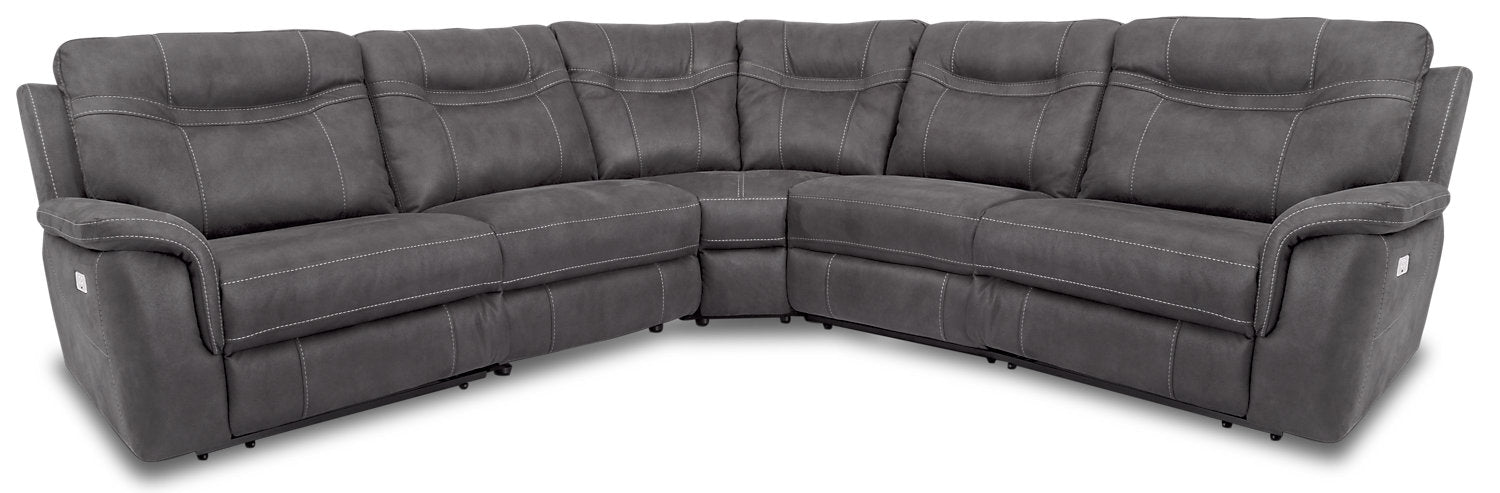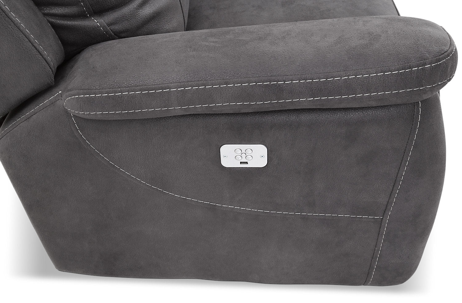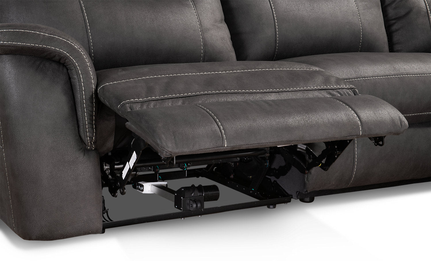 | Furniture Feet | This power reclining piece rests on a robust metal base. |
