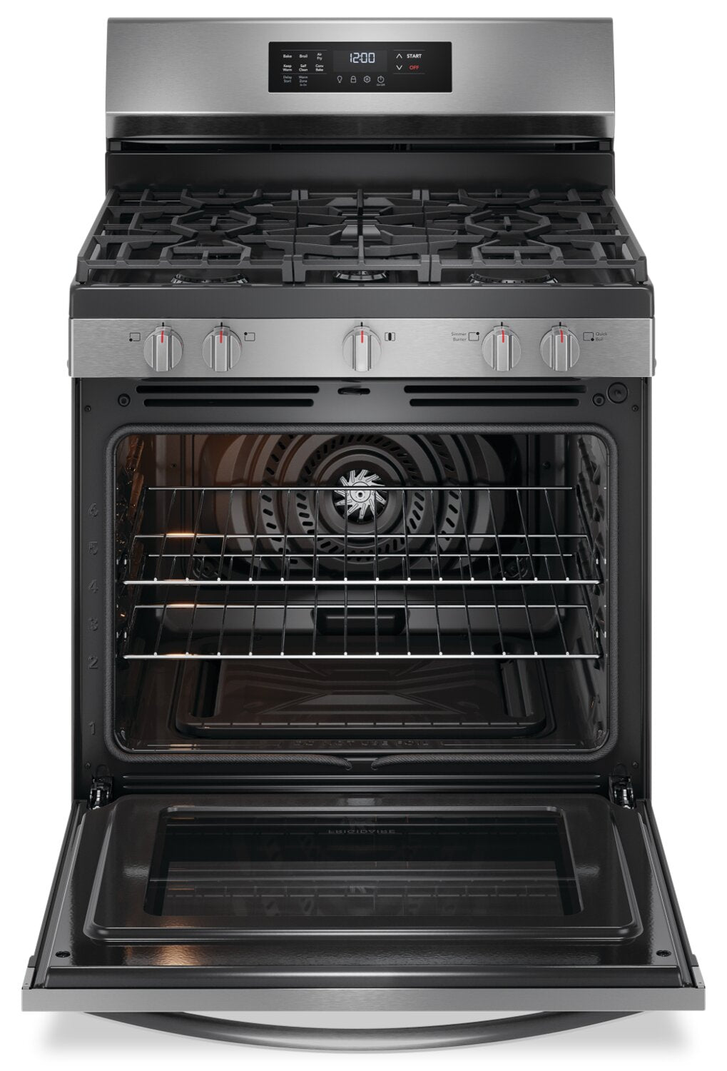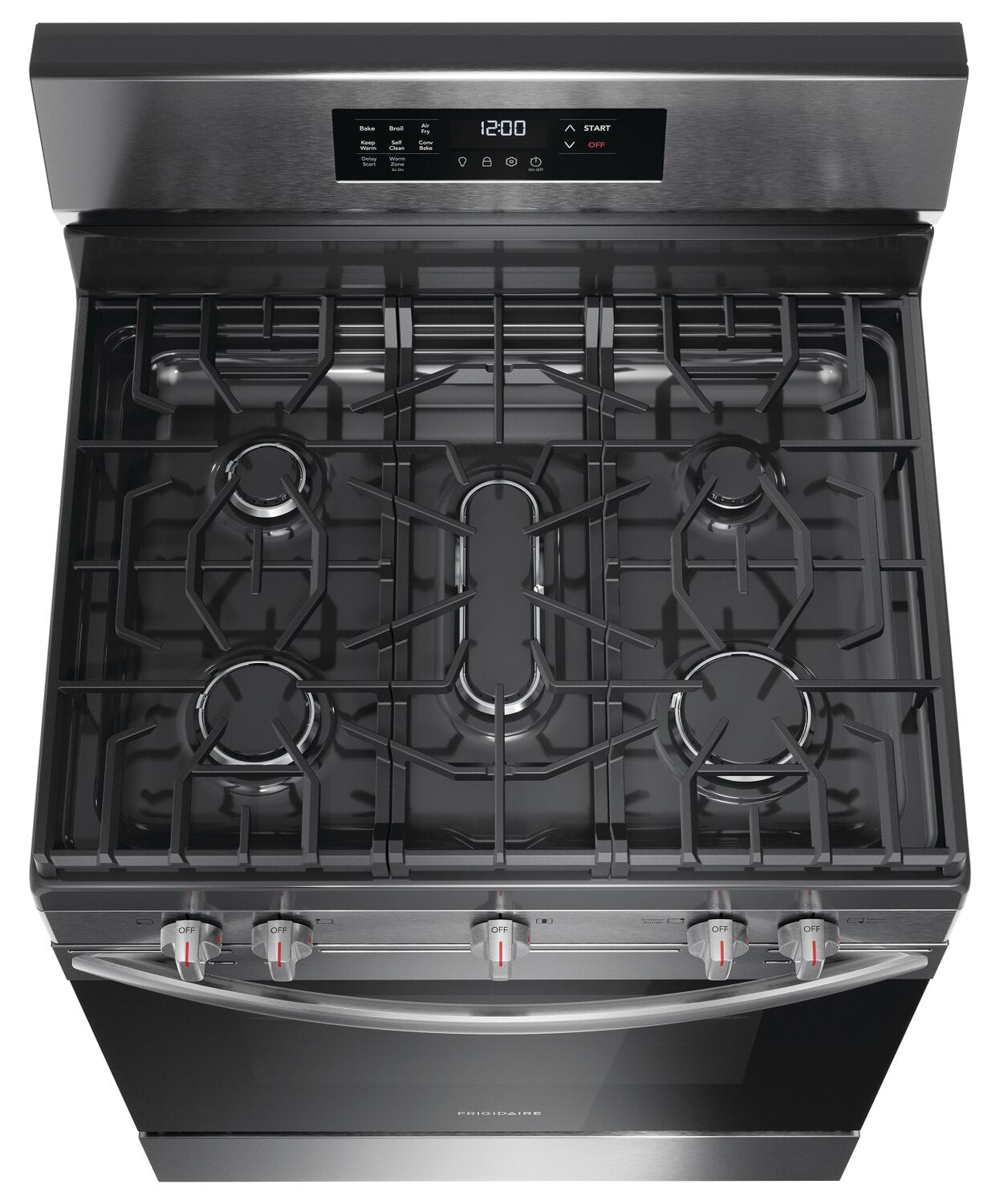Air Fry: Convection Bake: Flexible Five-Burner Cooktop: One-Touch Self-Clean: Dishwasher-Safe Burner Caps: Continuous Edge-to-Edge Grates: Extra Wide Store-More™ Storage Drawer: |