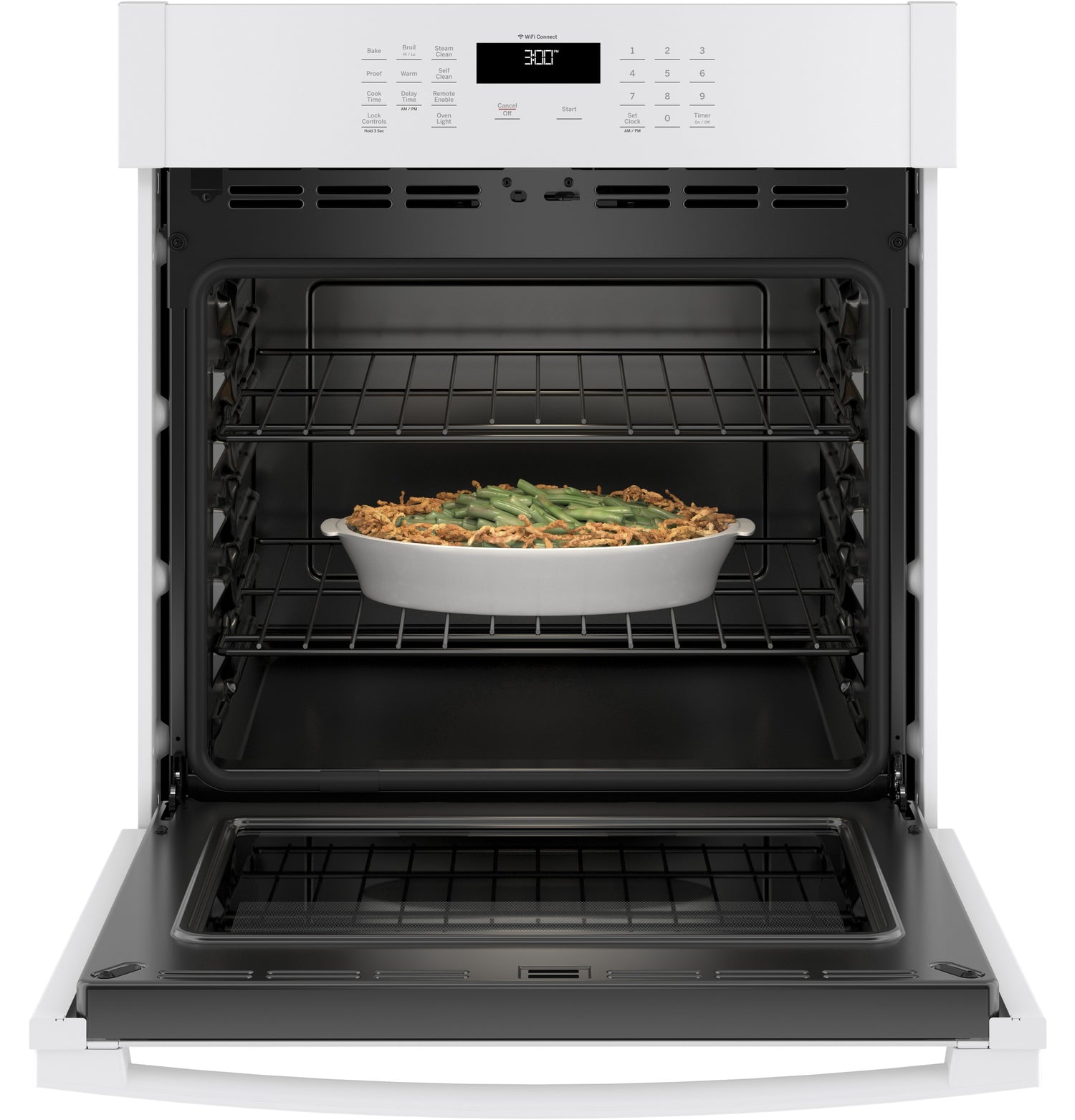 Wi-Fi Connect: Remote Control Enabled: Self-Clean with Optional Steam Clean: Glass Touch Controls: 10-Pass Hidden Bake Element: Never-Scrub Heavy-Duty Racks: |