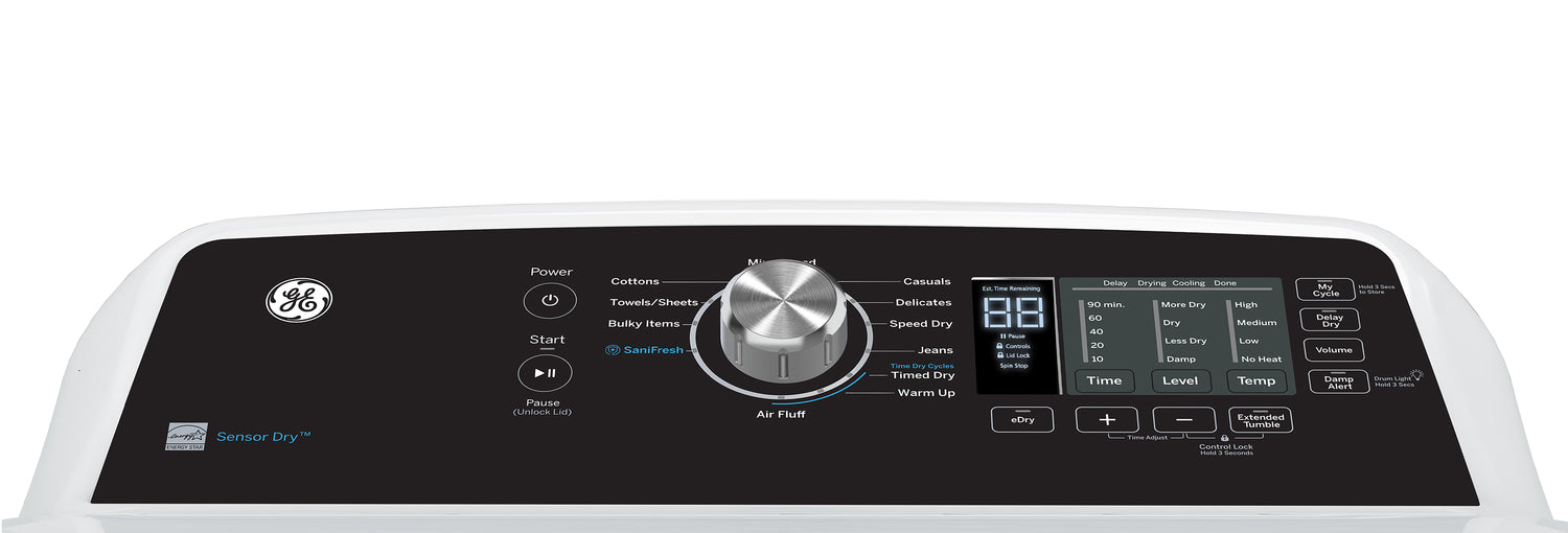 | Dry Cycles | Cottons, Casuals, Delicates, Timed Dry, Mixed Load, Speed Dry, Jeans, Warm Up Air Fluff / Quick Fluff, Sanitize, Bulky Items, Towels & Sheets |