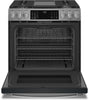 This Profile gas range makes a statement in the kitchen. Boasting a modern yet rugged appearance with industrial style knobs, cast iron grates and a stainless finish, this appliance packs the features you need to master every meal. A powerful 21,000-BTU element brings the heat to boil water or sear meats in a flash. The unique integrated stovetop griddle is large enough to cook for the whole family and is also reversible to be used as a grill. Plus, the oven is equipped with no-preheat Air Fry to execute tasty, healthy treats without the wait.