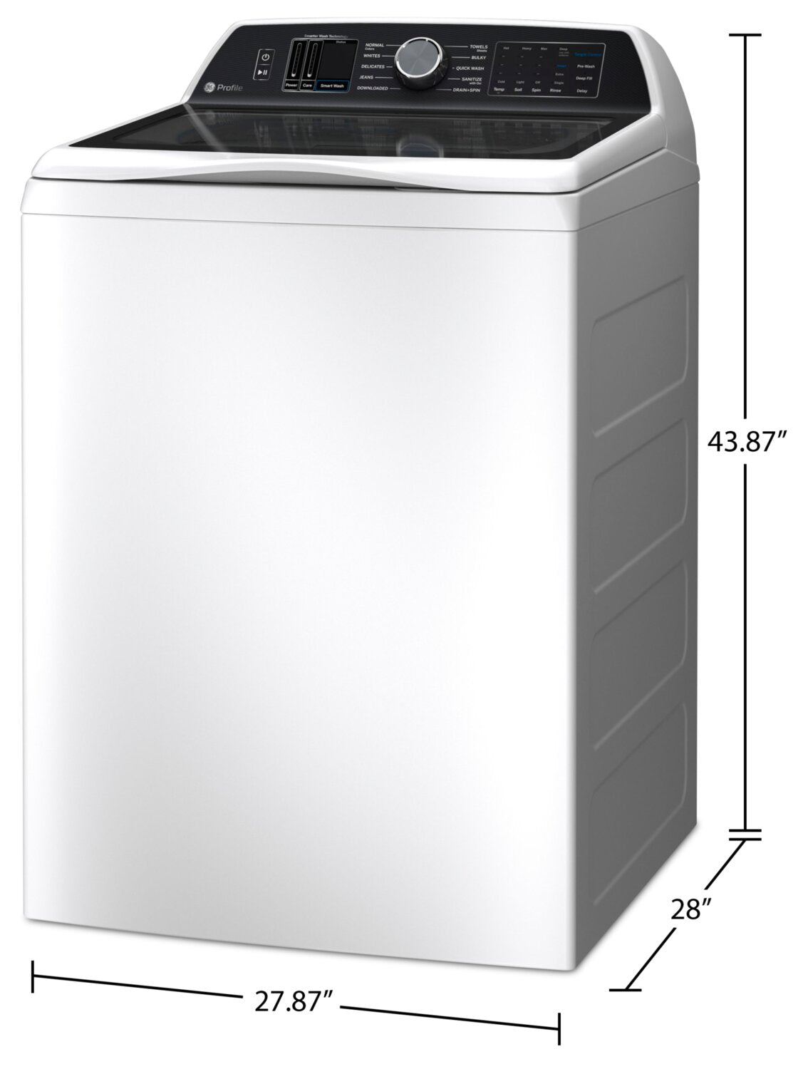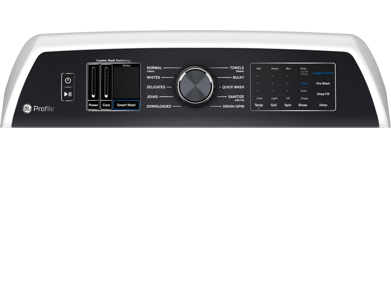 This Profile top-load washer provides a thorough clean without any guesswork. After selecting a cycle, choose either Power Clean or Gentle Care and the washer will optimize each wash to suit your laundry needs. Then, sensors in the machine measure soil and detergent levels to ensure the ideal wash and rinse times for a proper clean and better fabric care. For incredible convenience no matter where you are, monitor and control the washer, download extra cycles and more right from your smartphone with the SmartHQ™ app.