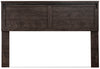 Let the worries of the world melt away when you snuggle up against the Grayson queen headboard. Sturdy engineered wood is finished with a rich, dark grey colour that highlights natural-looking woodgrain and textures. Metal lines, buckles and rounded nailheads add eye-catching accent detail across the headboard. Add the Grayson to your bedroom and help make your dreams just that much sweeter.