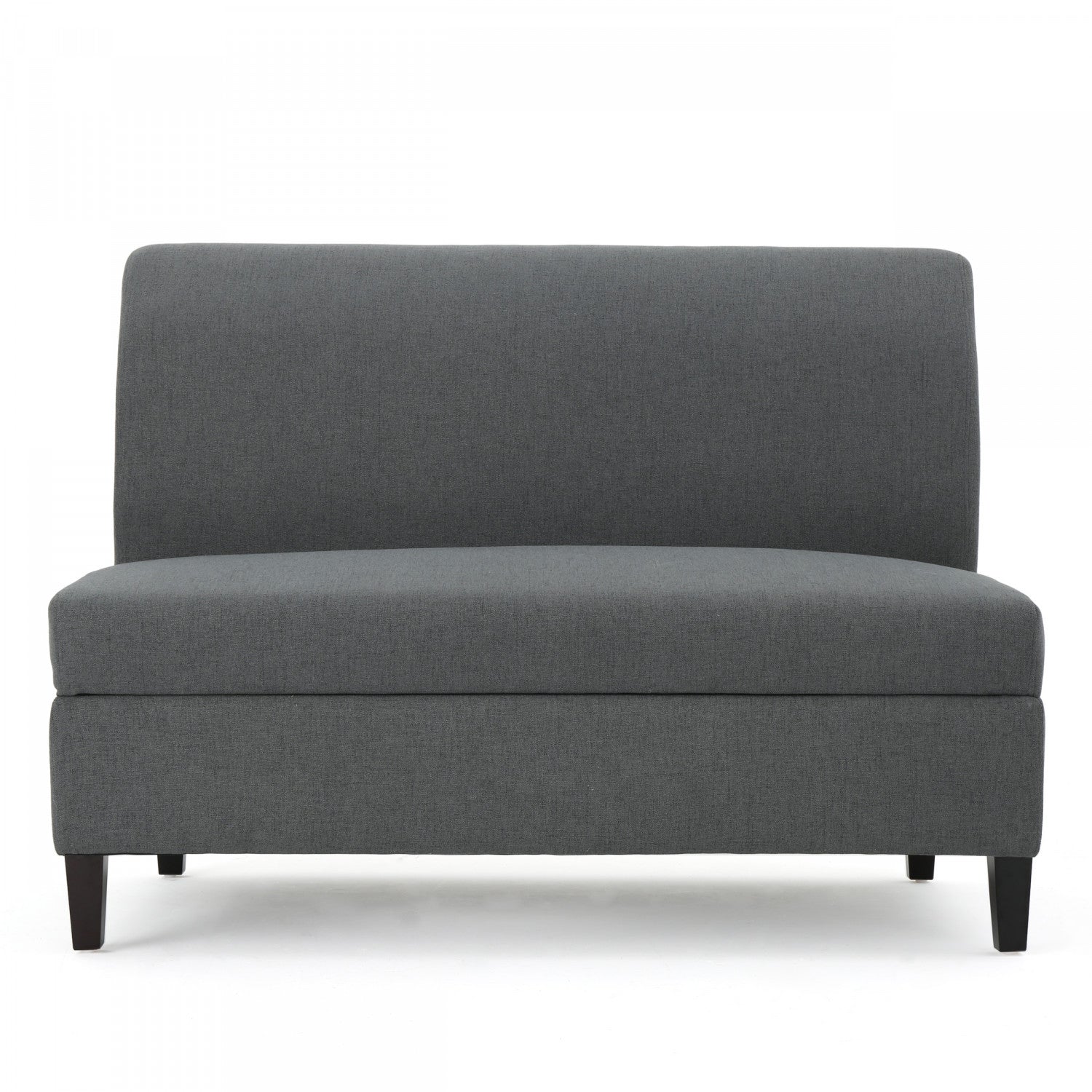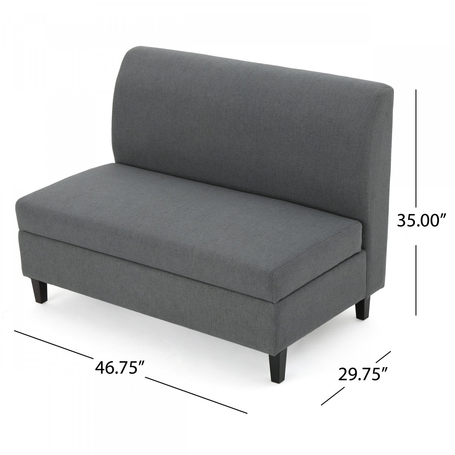 Maximize style and function with this modern charcoal loveseat featuring hidden storage under the seat. Upholstered in durable 100% polyester fabric and filled with high-density foam,it offers both lasting comfort and everyday practicality. The clean,armless design and sleek wood legs create a contemporary look perfect for small spaces. Built on a sturdy wood frame for stability and longevity,this piece easily blends with modern interiors. Assembly is simple with included tools and instructions,making it a smart and stylish choice for your living room or entryway.