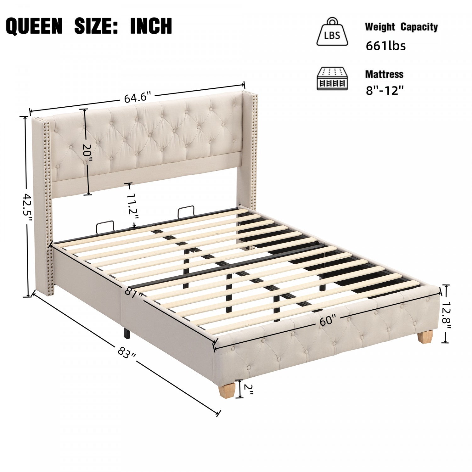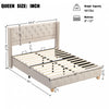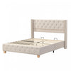 Haley Linen Upholstered Platform Bed with Classic Wingback Headboard and Diamond Tufted Upholstery,Queen Size,Beige Queen Bed