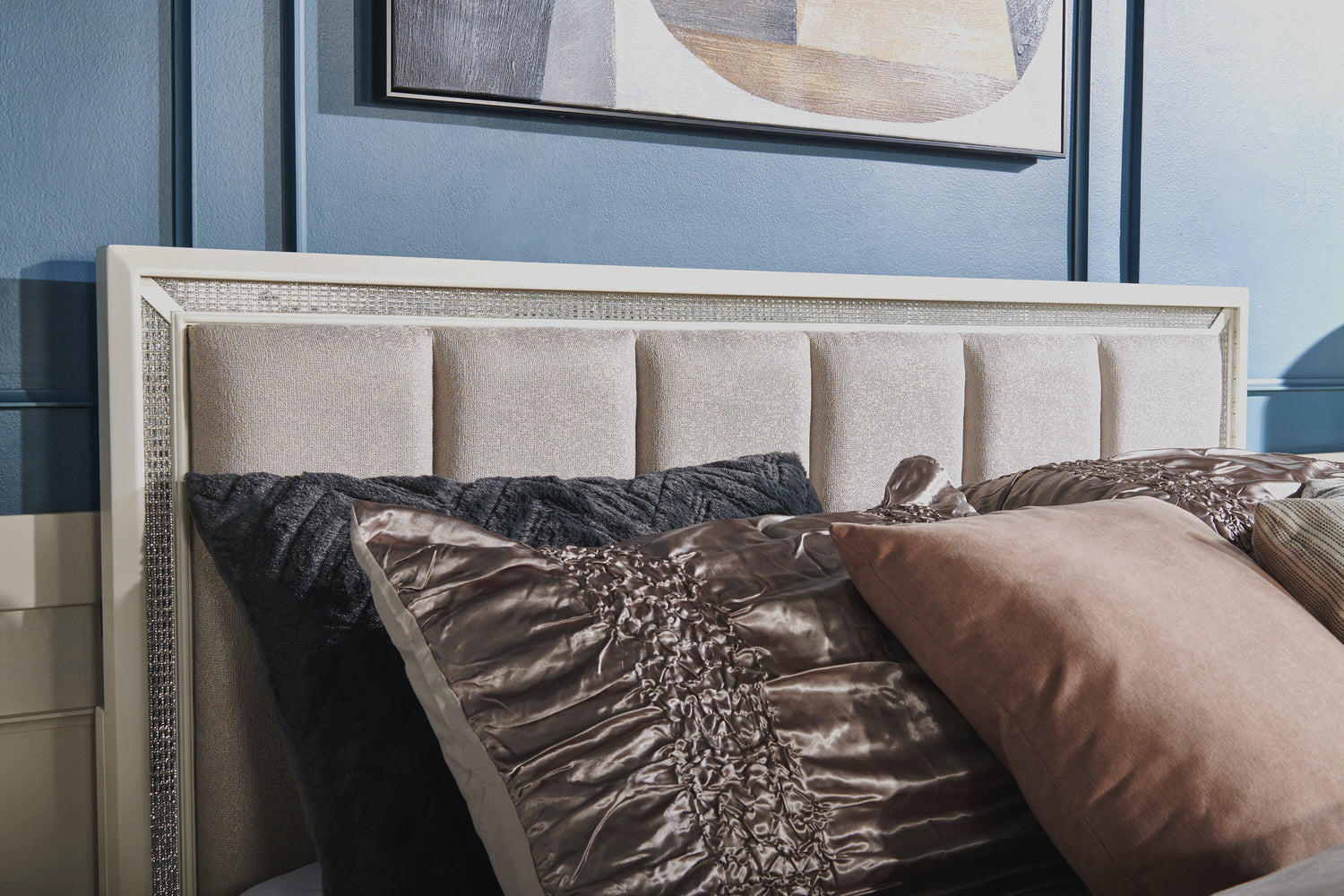 Halo Panel Bed with Headboard & Frame, LED, Glam, White - Queen Size