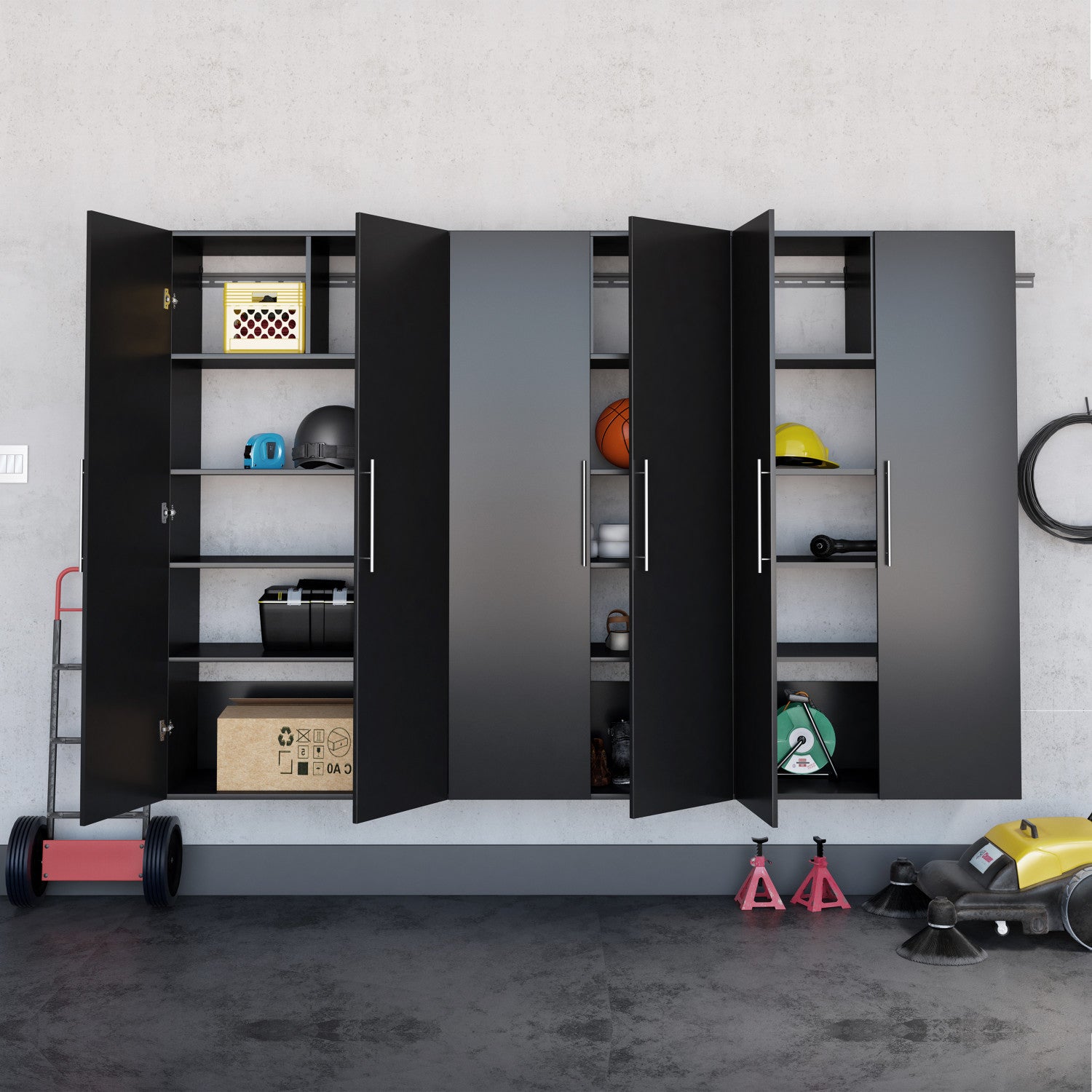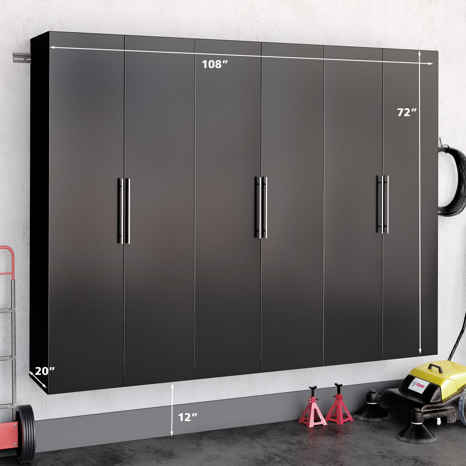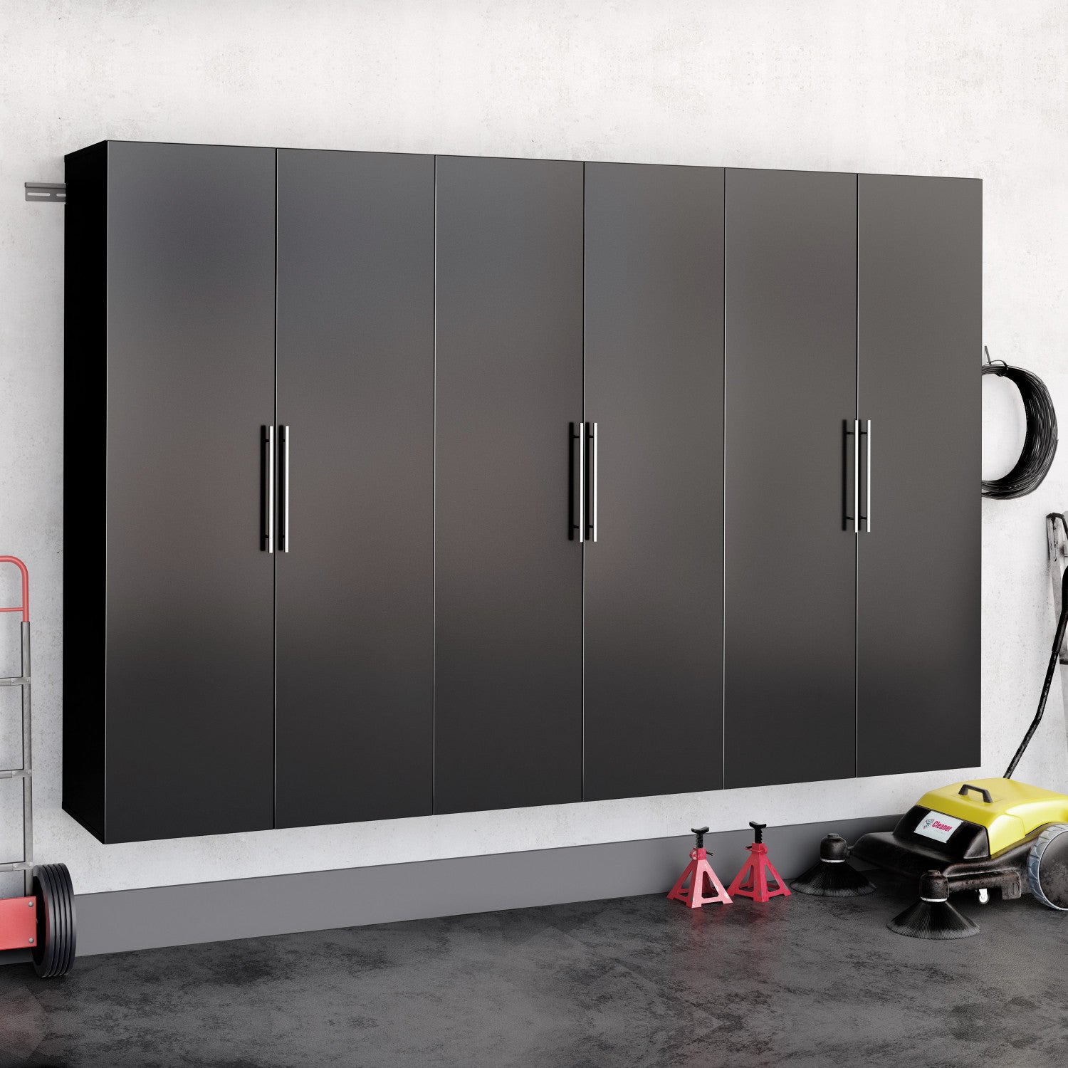 The hangups storage cabinet collection offers versatility for your ever changing storage needs in the garage, laundry room, office or workshop. The cabinets mount securely to the wall with a heavy duty metal rail and hook system. The wall mounted feature ensures easy cleaning beneath the cabinets and protects your stored items from water and dirt. The hangups collection is constructed using laminated composite wood and features metal handles and adjustable hinges. This product ships ready-to-assemble and includes all hanging rails and fastening bolts. Add other cabinets from our hangups collection to create a storage system to convert any cluttered room into an organized space. 5-year manufacturer’s limited warranty on parts. Manufactured in canada and meets all north american safety standards. Set e includes: 3 x 36" large storage cabinet (bscw-0708-2k).