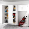 Introducing the hangups large bathroom dresser, an essential piece for home decor and a multipurpose solution for organization and storage for classroom spaces, bathroom, kitchen and more. This cabinet champions in bathroom organizers and storage solutions, featuring a sleek, wall-mounted design with two aesthetically pleasing, fully adjustable doors. Encased within these doors you'll find three modifiable shelves and an additional divided shelf, perfect for storing anything from classroom storage essentials to personal belongings. Coated in a fresh white laminate finish with shiny satin nickel-finished handles, this copious storage cabinet blends effortlessly with any decor, suitable for kitchen cabinets, bathroom storage cabinets or even as a stylish pantry cabinet. As a part of bathroom organizers and storage solutions, it provides ample space for all of your bathroom essentials, offering the perks of a bathroom storage closet and a bathroom storage organizer in one. Beyond a bathroom cabinet, this versatile piece is equally effective as classroom organization and storage, providing an ample amount of space for textbooks, stationery and other education essentials. Its robust build emulates the sturdiness of plastic storage containers with lids or storage bins with lids, ensuring everything within is securely stored. Made with carb-2 compliant non-toxic laminated composite woods, this product guarantees durability and safety. It measures a convenient 20""d x 36""w x 72""h, comparable in size to your typical bookshelf or shoe organizer, but offering a wealth of storage options. Simple assembly is ensured with an instructional booklet and heavy-duty rail and hook system. Shipped flat-packed for ease, this piece is truly an excellent addition to your home or office, especially catering to dorm room essentials for college students girls and boys alike. Pair it with other items from the hang-ups collection for a comprehensive, stylish storage solution.