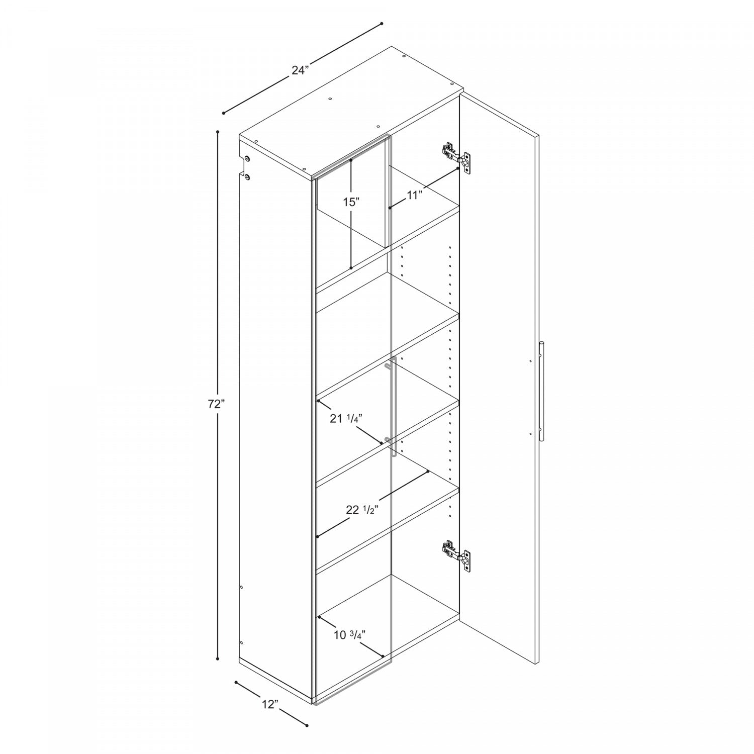 Width: 24" (61.0 cm) Height: 72" (182.9 cm) Depth: 12" (30.5 cm)